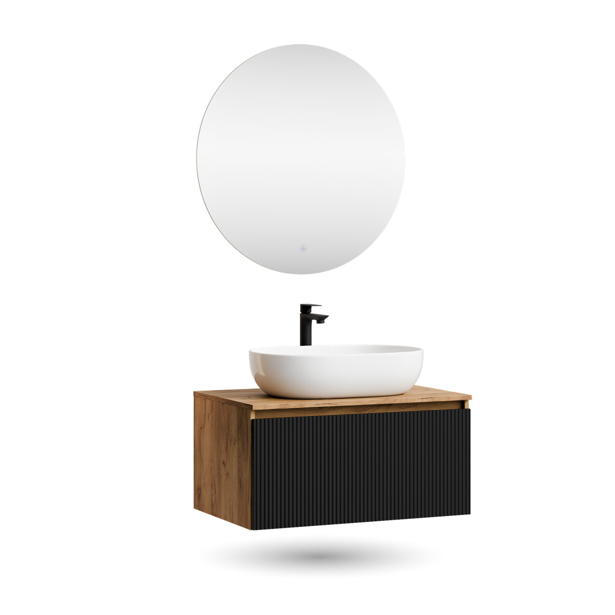 ARISA Badmöbel Set mit Aufsatzwaschbecken & „Nova“ LED Spiegel – Modernes Design mit Soft-Close-Funktion