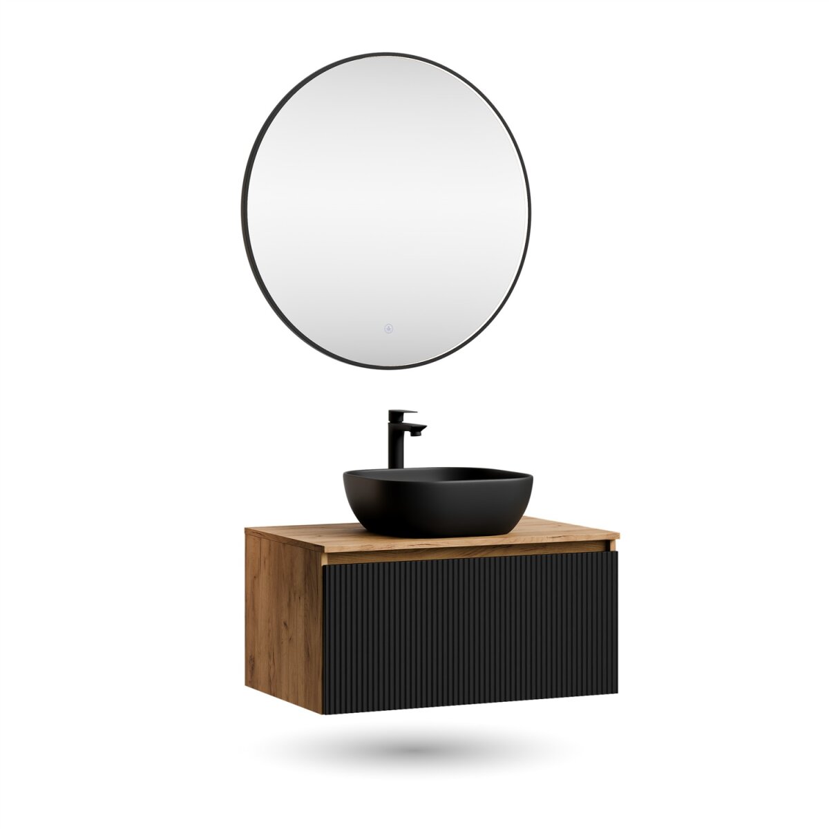 ARISA Badmöbel Set mit Aufsatzwaschbecken & „Veluna“ LED Spiegel – Modernes Design mit Soft-Close-Funktion