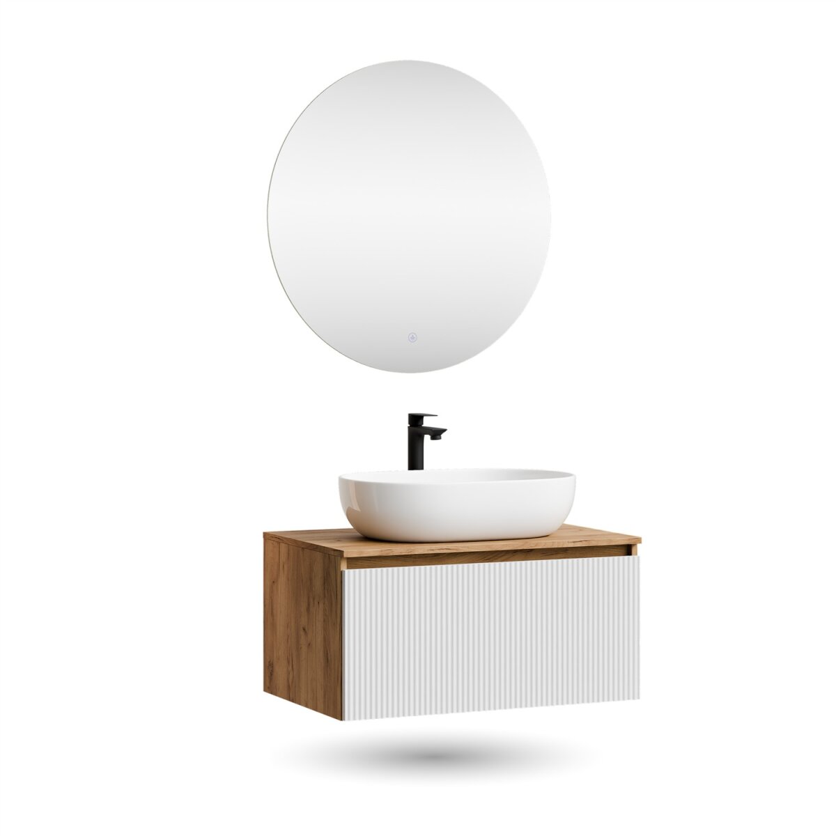 ARISA Badmöbel Set mit Aufsatzwaschbecken & „Nova“ LED Spiegel – Modernes Design mit Soft-Close-Funktion