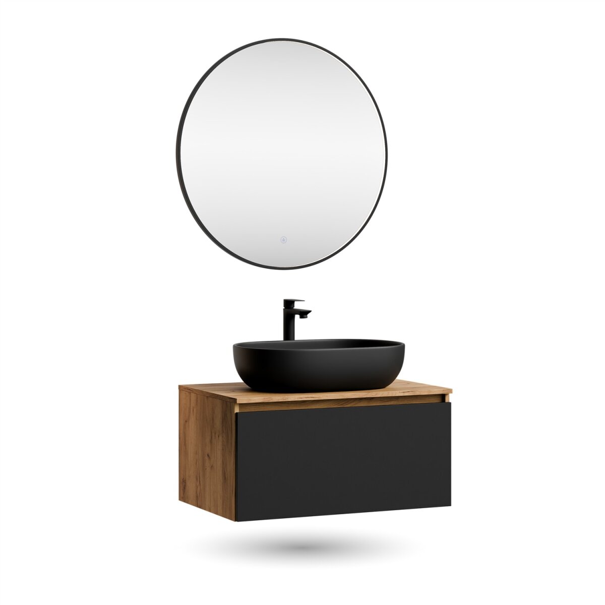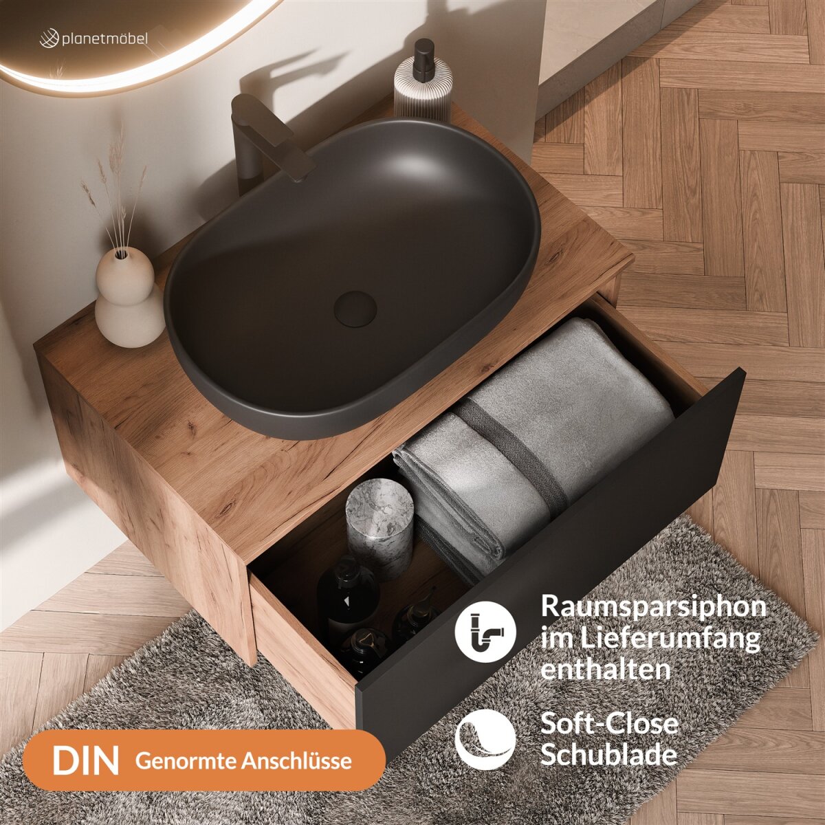 ARISA Badmöbel Set mit Aufsatzwaschbecken & „Veluna“ LED Spiegel – Modernes Design mit Soft-Close-Funktion