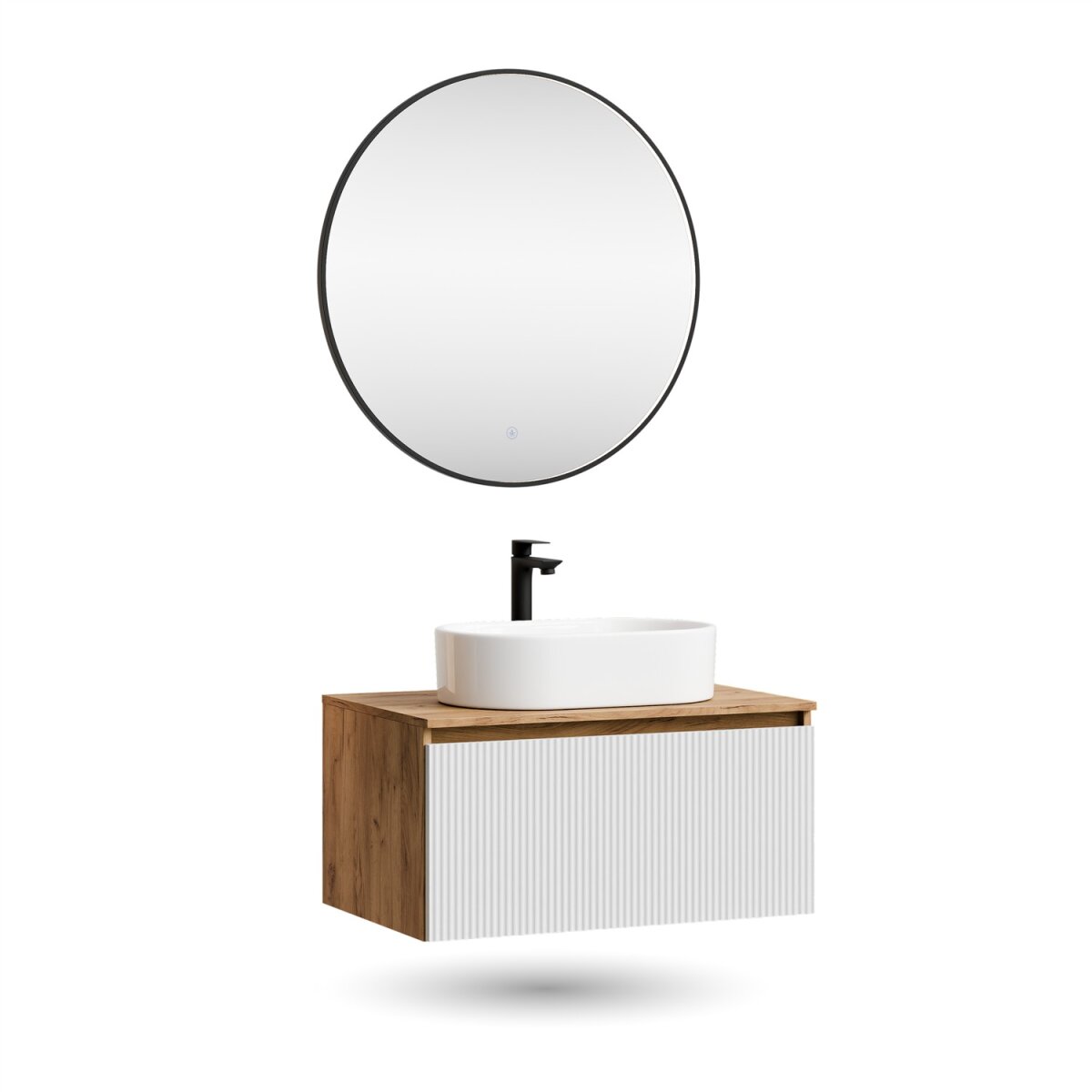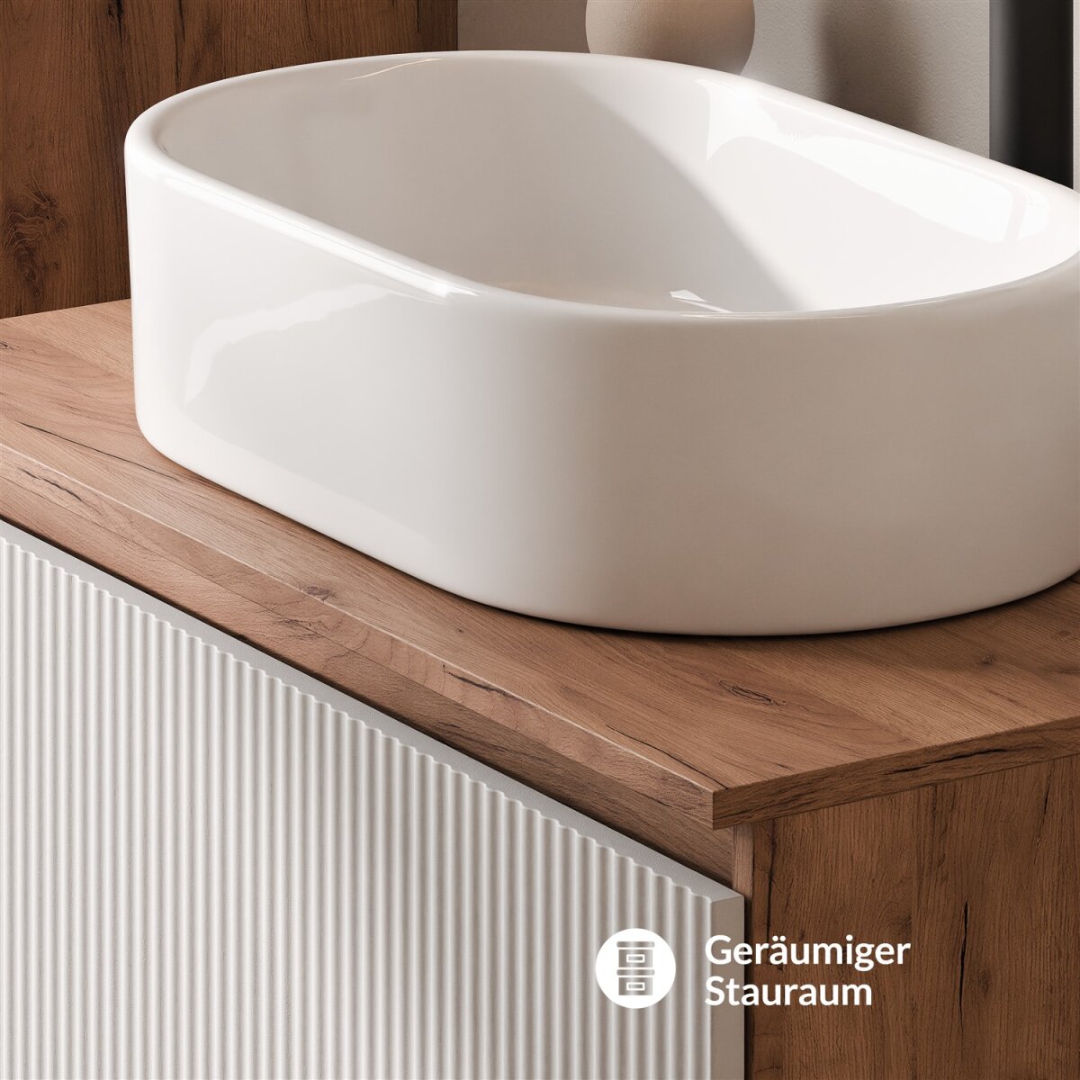 ARISA Badmöbel Set mit Aufsatzwaschbecken & „Veluna“ LED Spiegel – Modernes Design mit Soft-Close-Funktion