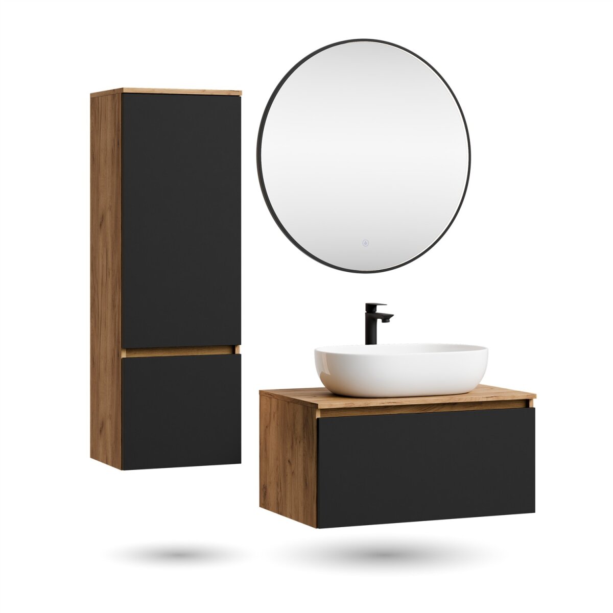 ARISA Badmöbel Set mit Aufsatzwaschbecken & „Veluna“ LED Spiegel – Modernes Design mit Soft-Close-Funktion