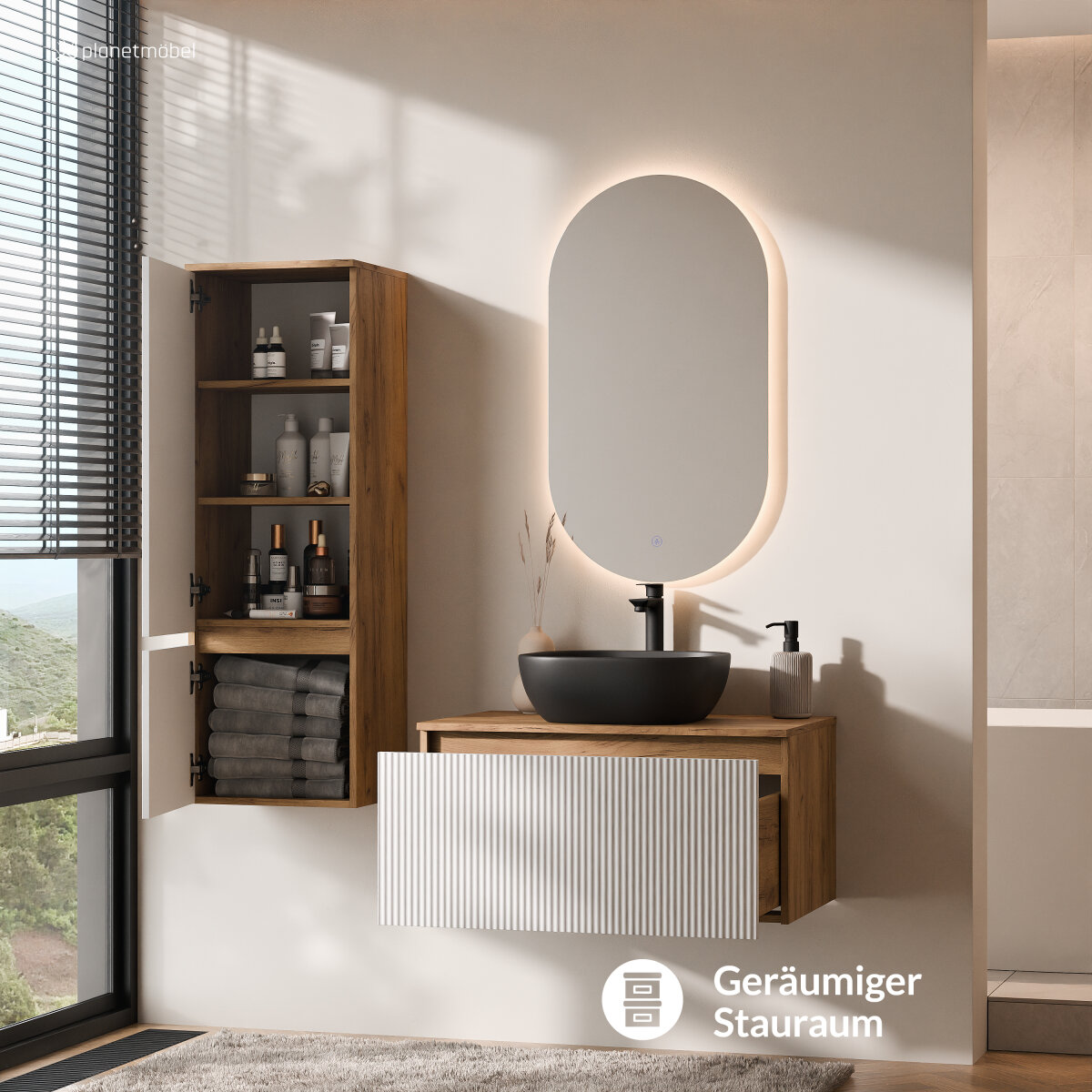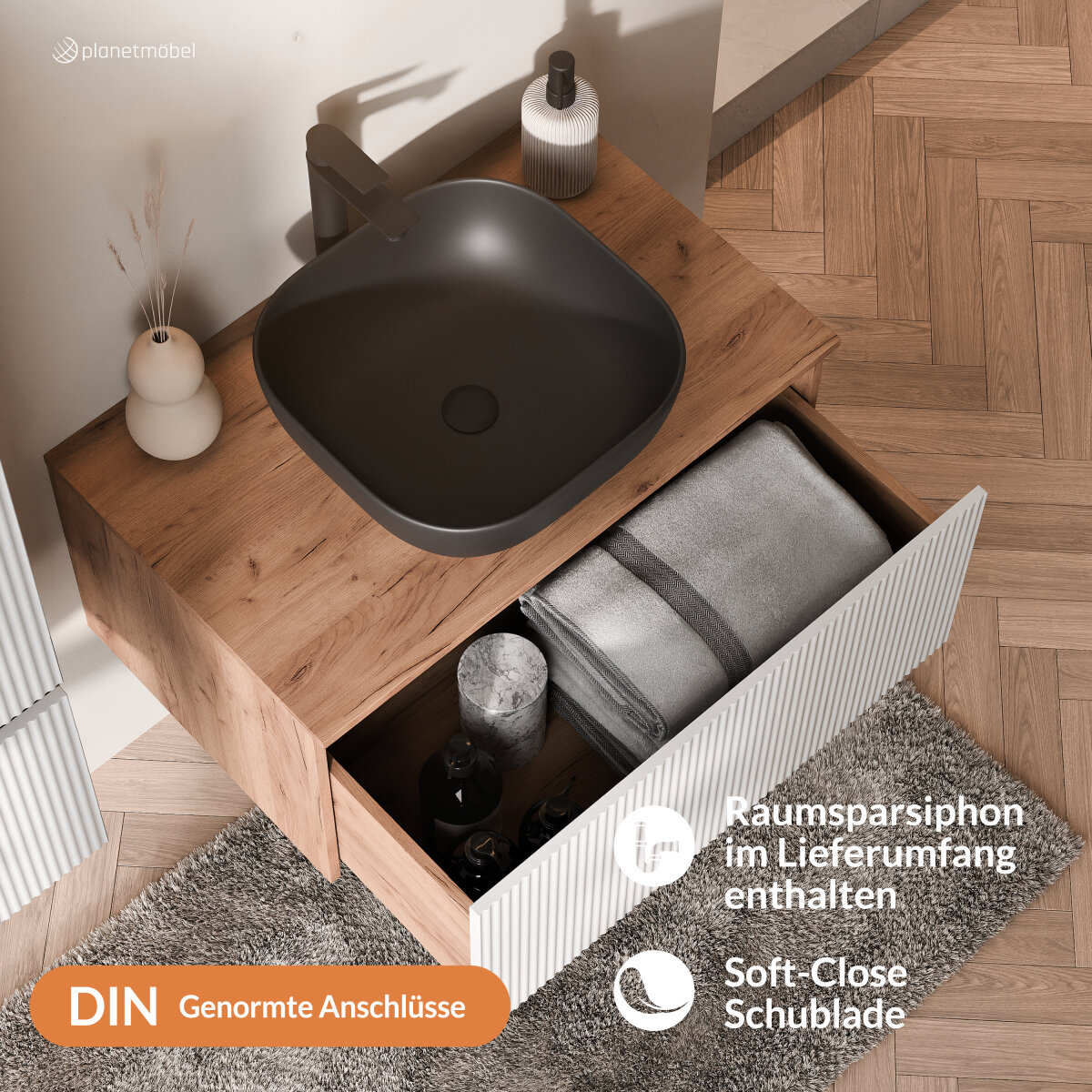 ARISA Badmöbel Set mit Aufsatzwaschbecken & LED Spiegel – Modernes Design mit Soft-Close-Funktion