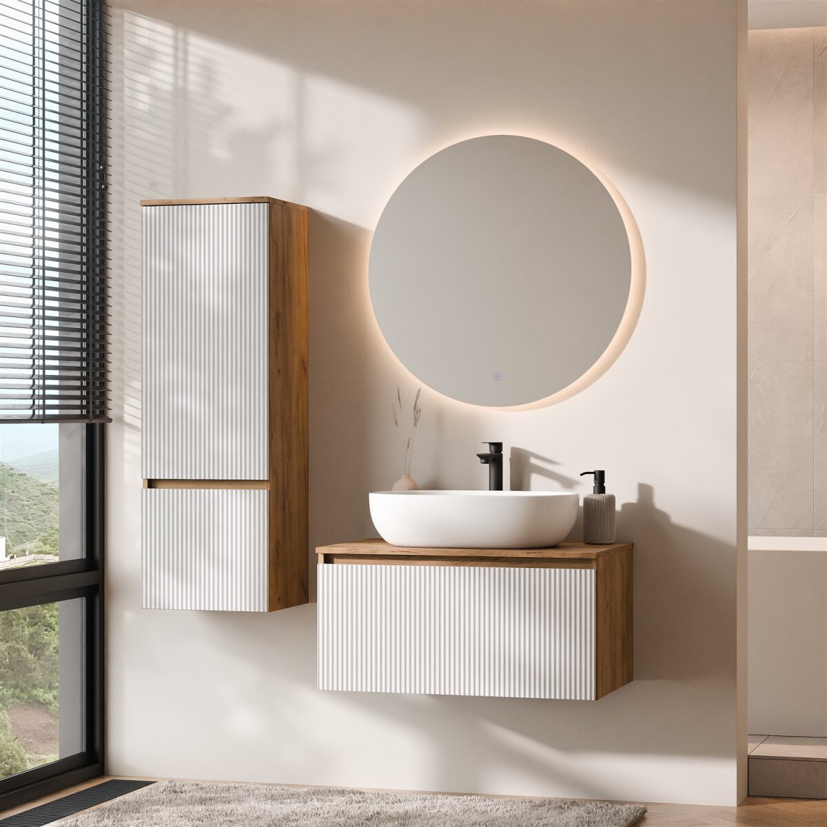 ARISA Badmöbel Set mit Aufsatzwaschbecken & „Nova“ LED Spiegel – Modernes Design mit Soft-Close-Funktion