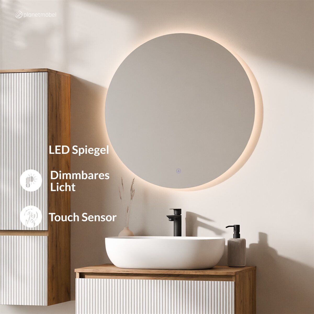 Der runde „Nova“ LED Spiegel kombiniert modernes Design mit hoher Alltagstauglichkeit. Die dimm- und farbverstellbare LED-Beleuchtung (Warmweiß, Neutralweiß oder Kaltweiß, 4200 K) sorgt für eine gleichmäßige, natürliche Ausleuchtung.