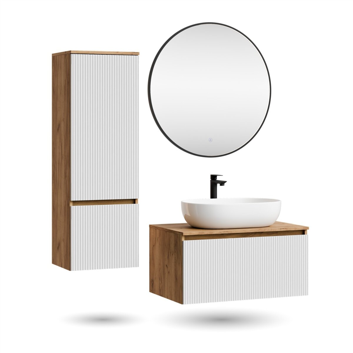 ARISA Badmöbel Set mit Aufsatzwaschbecken & „Veluna“ LED Spiegel – Modernes Design mit Soft-Close-Funktion