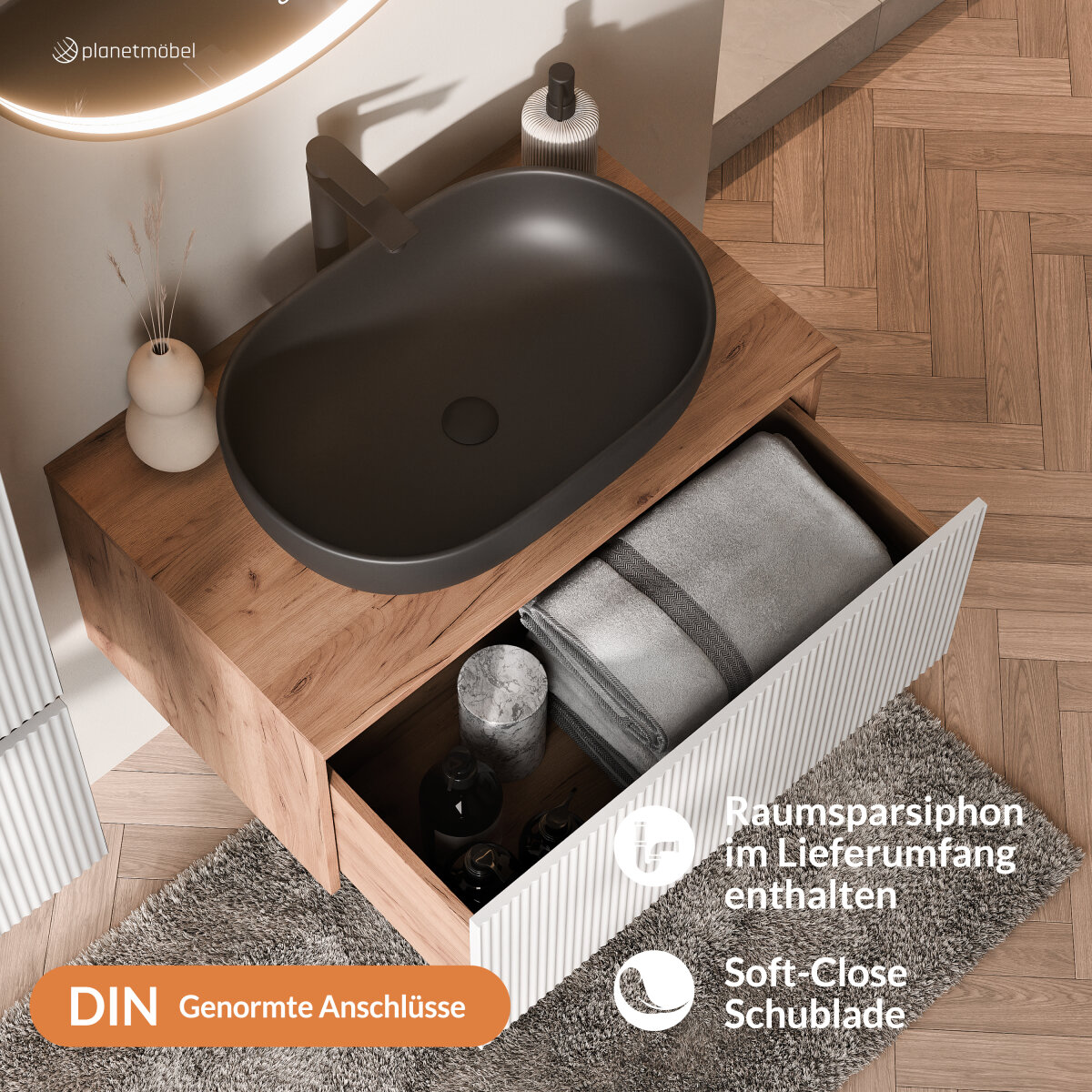 ARISA Badmöbel Set mit Aufsatzwaschbecken & „Glora“ LED Spiegel – Modernes Design mit Soft-Close-Funktion