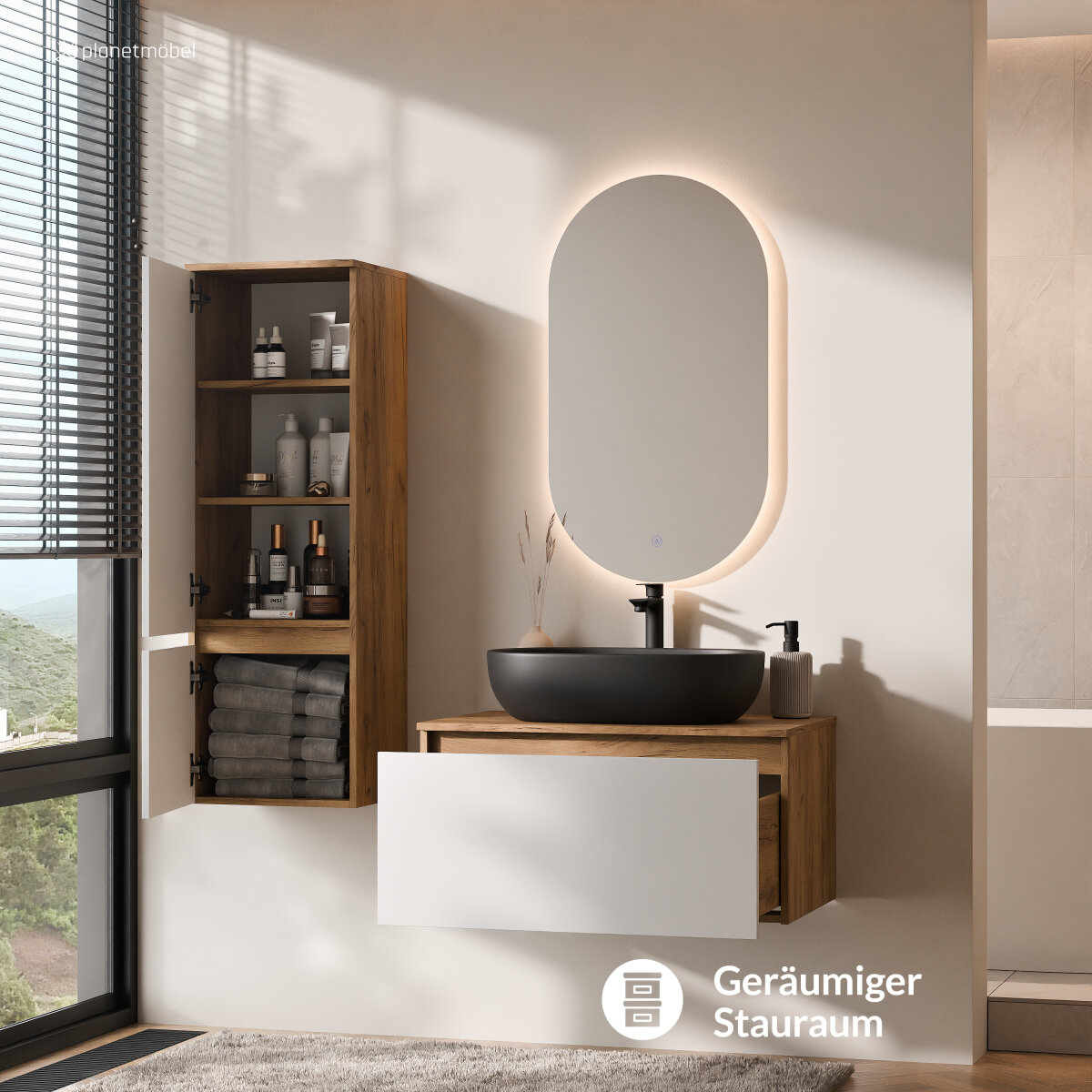 ARISA Badmöbel Set mit Aufsatzwaschbecken & LED Spiegel – Modernes Design mit Soft-Close-Funktion
