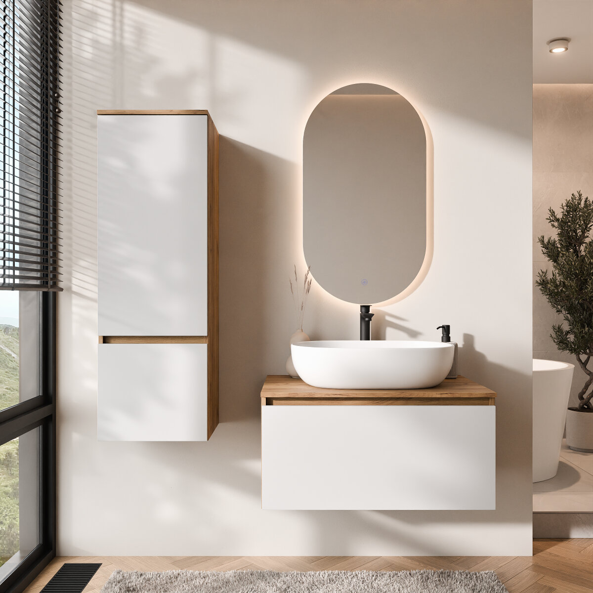 ARISA Badmöbel Set mit Aufsatzwaschbecken & LED Spiegel – Modernes Design mit Soft-Close-Funktion