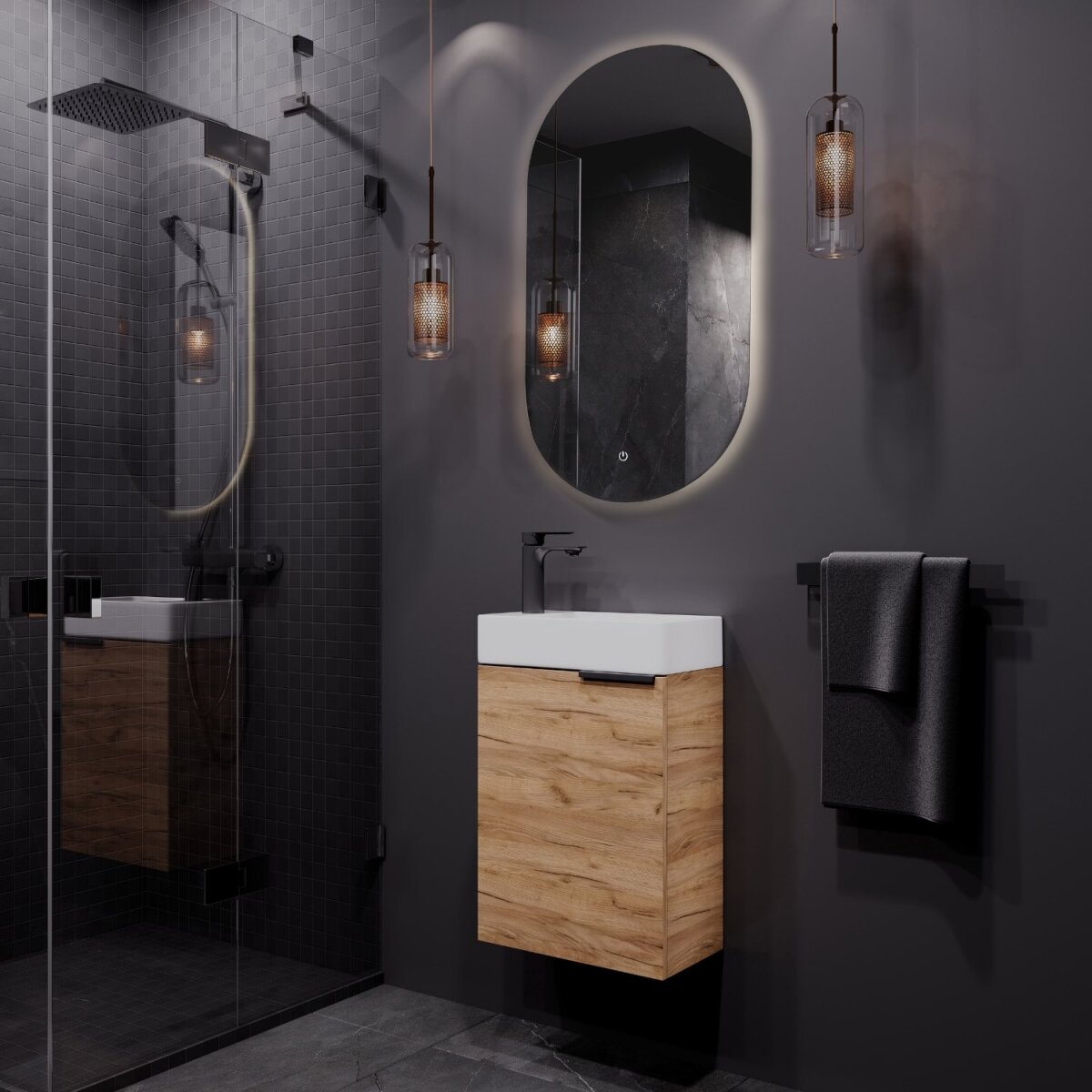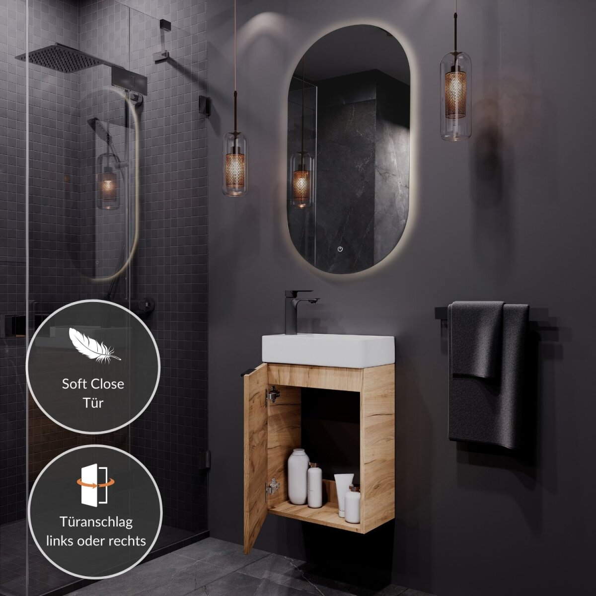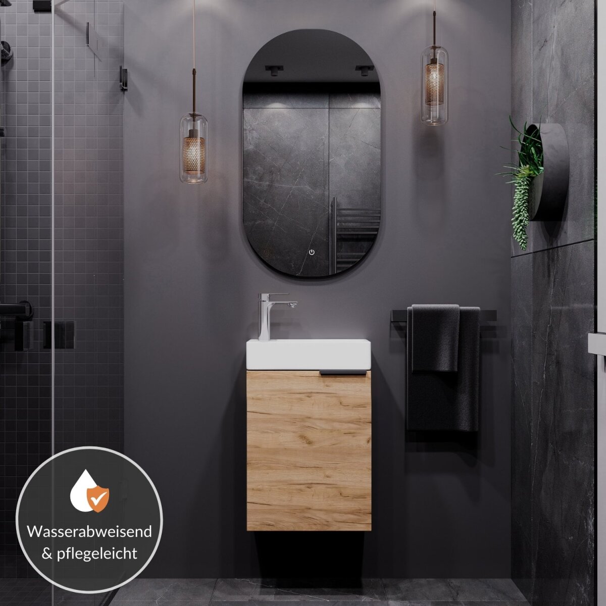 Badmöbel-Set 40 cm mit LED-Spiegel Gold Eiche – Kompakt, modern & funktional