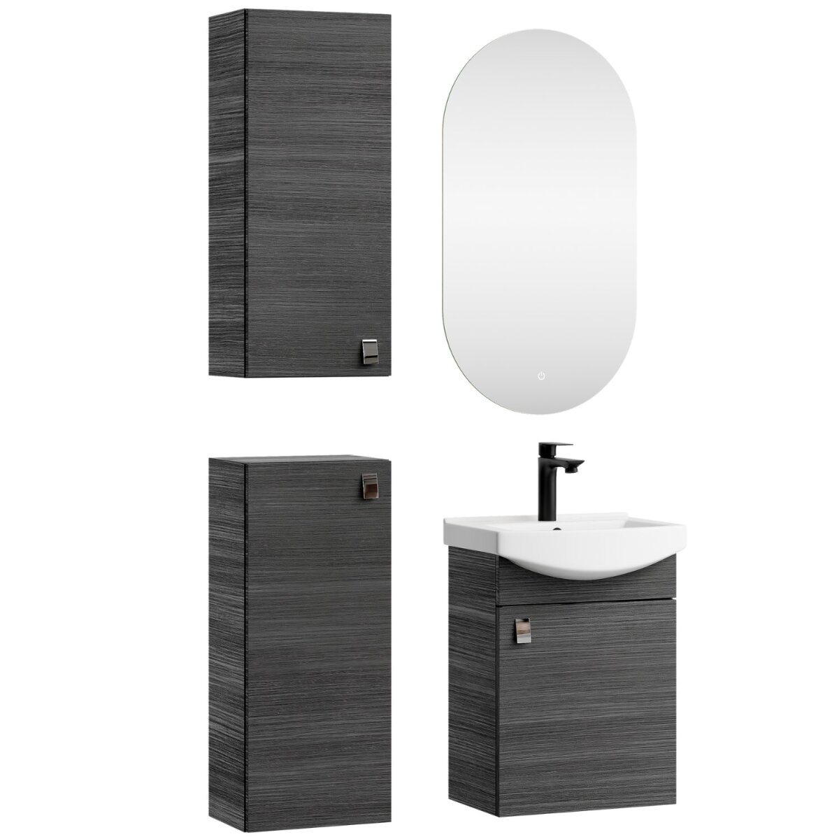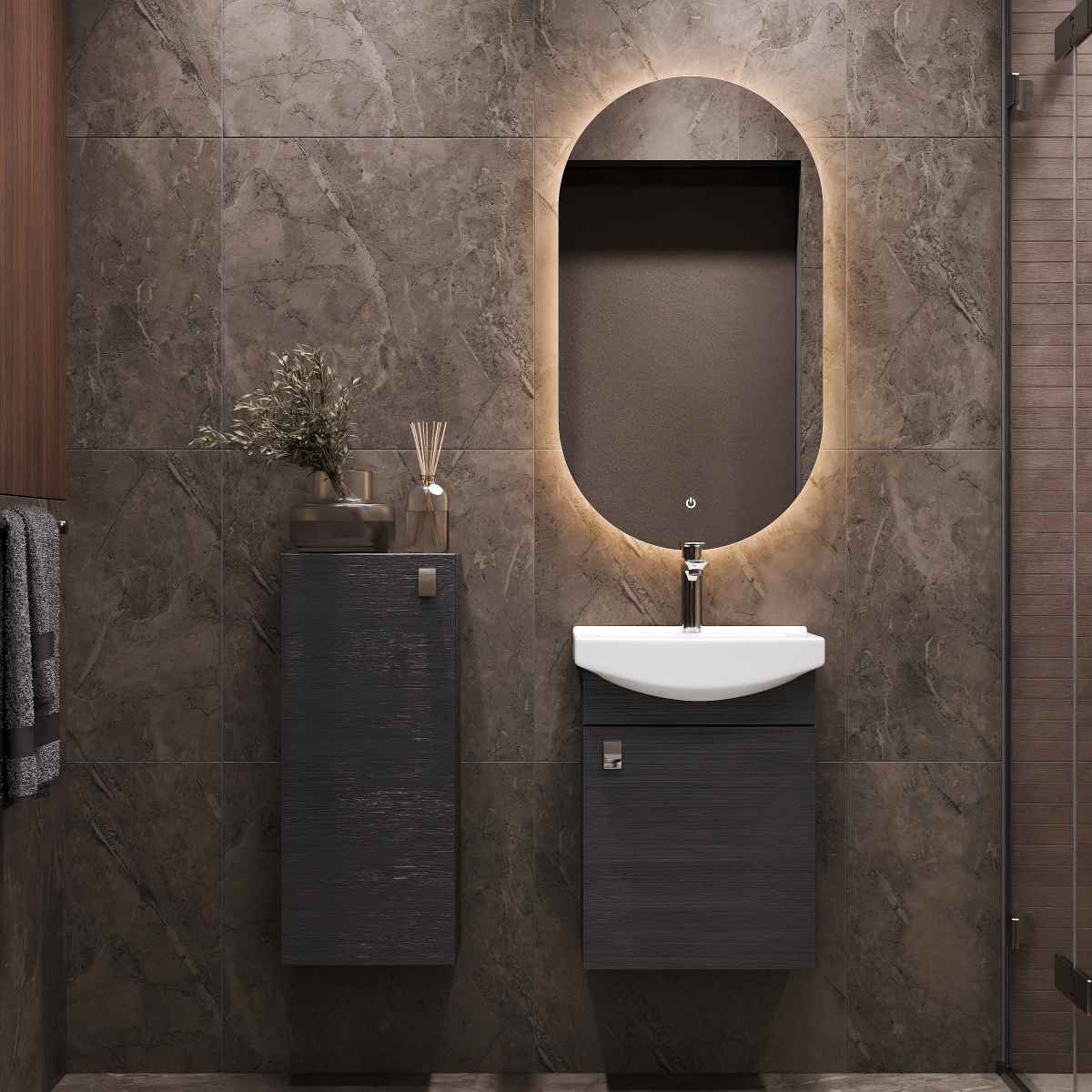 Badmöbel-Set – Waschtisch mit Keramikwaschbecken 45 cm, LED-Spiegel & 1 oder 2 Midischrank