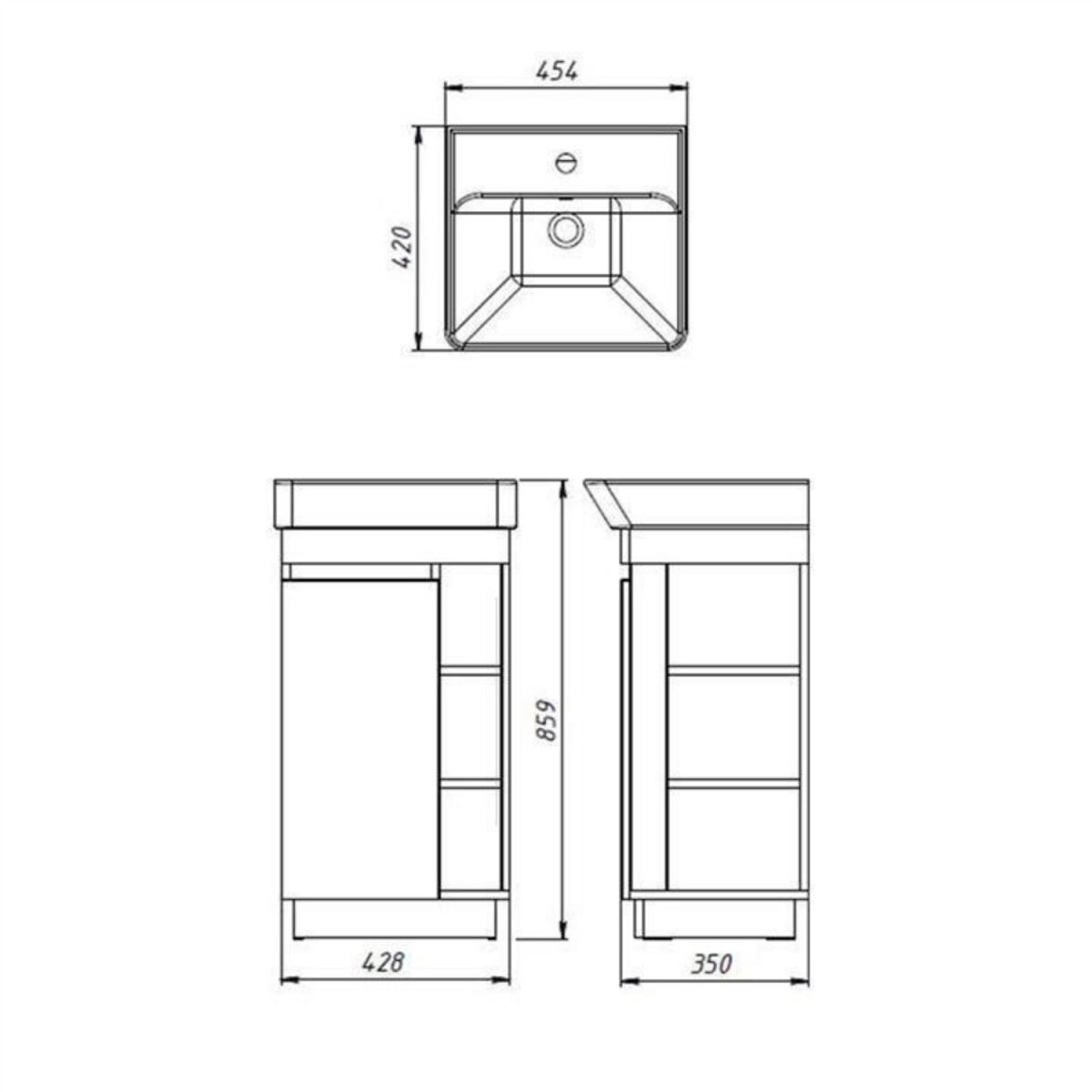 | Maße Waschtisch mit Waschbecken (B x H x T): | 45,4 x 85,9 x 42 cm |