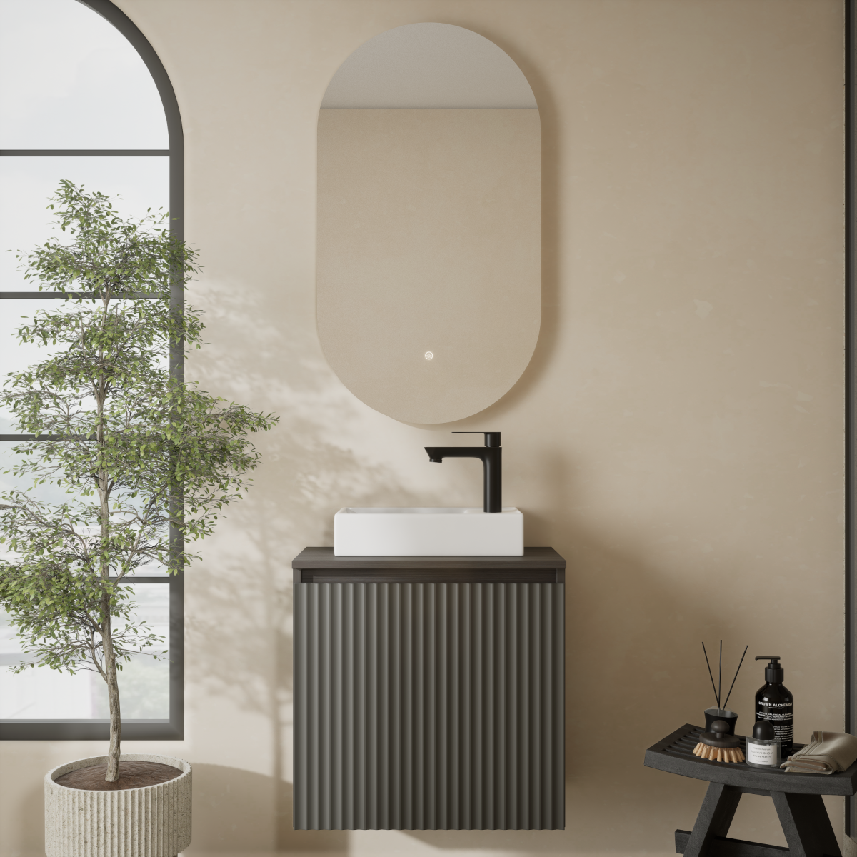 Klein, aber oho: Dieses Badmöbel Set kombiniert einen modernen 55 cm Waschtisch mit hochwertigem Keramikwaschbecken (40 cm) und einem passenden Badspiegel. So verwandeln Sie auch kleine Badezimmer in stilvolle Wohlfühlorte. Die klaren Linien und zwei edle Farbvarianten – Matt Weiß oder Matt Anthrazit – machen dieses Set zum eleganten Mittelpunkt Ihres Bades.
