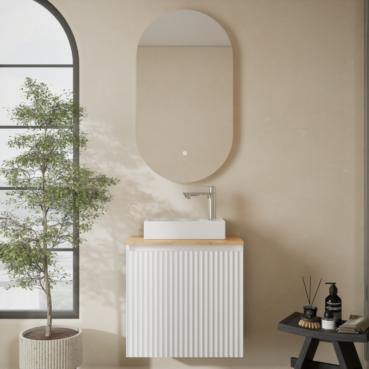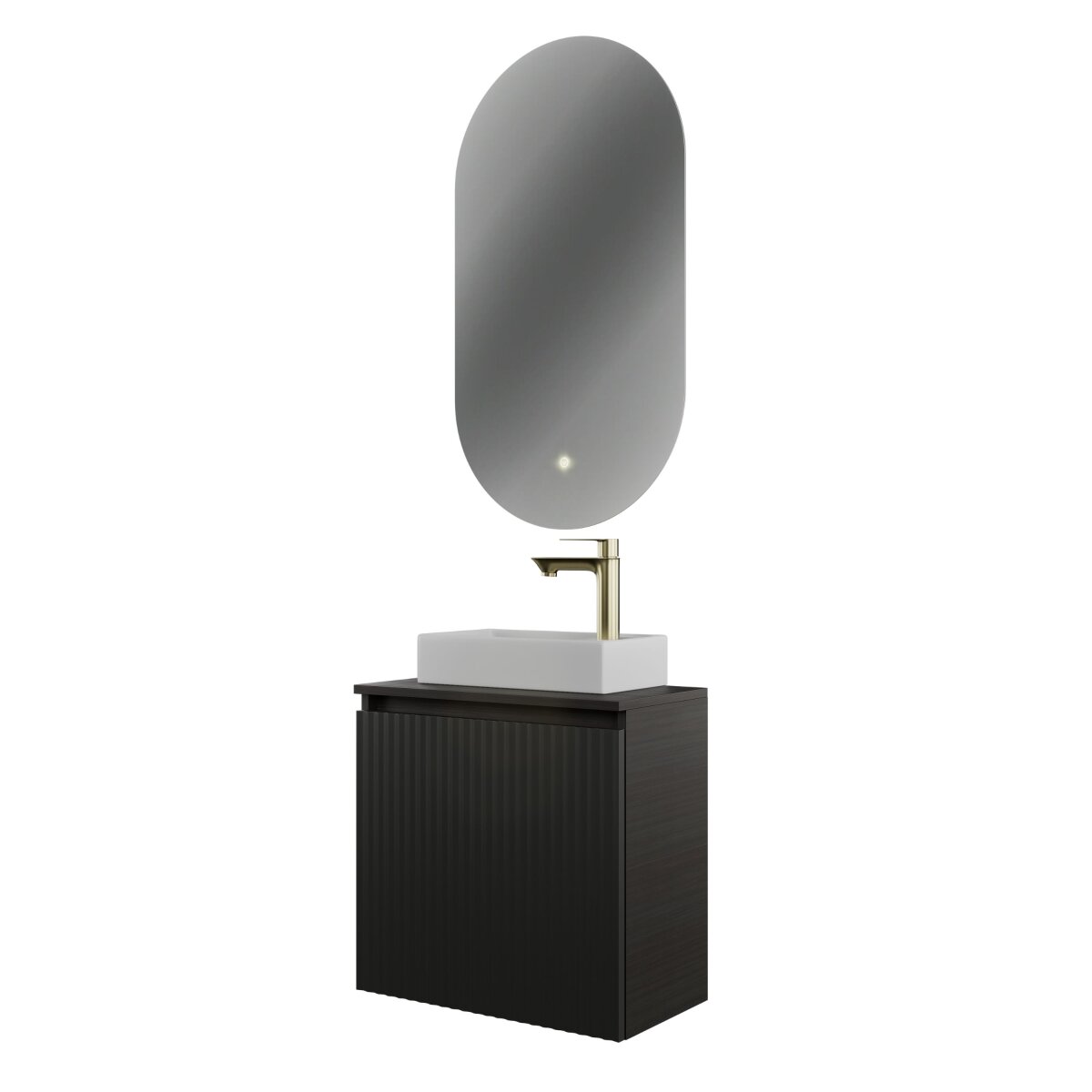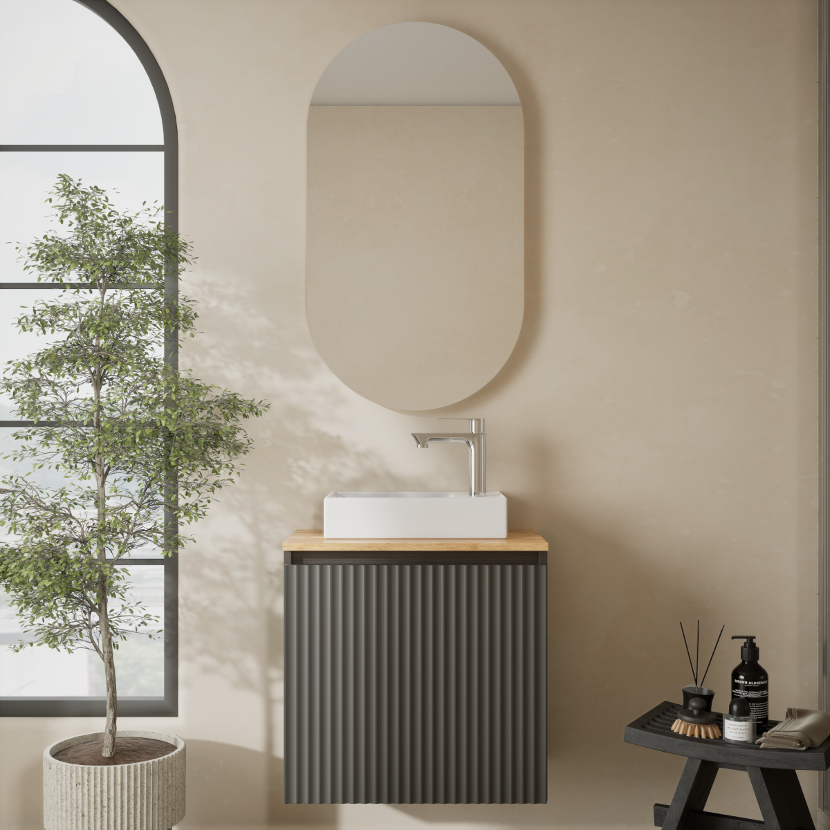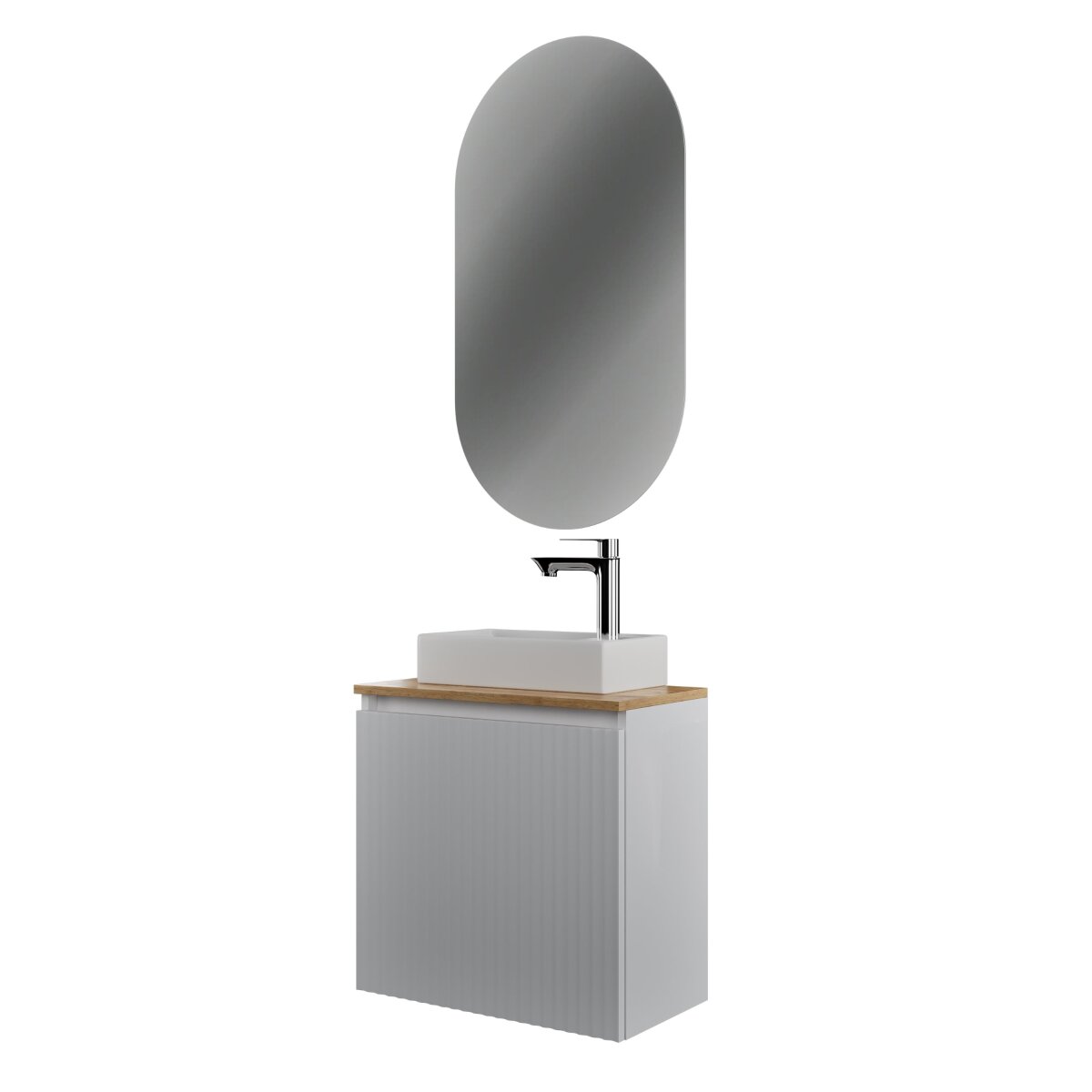 Dank der kompakten Breite von 55 cm eignet sich das Badmöbel Set perfekt für Gästebäder, kleine Stadtwohnungen oder stilvolle Mini-Bäder.