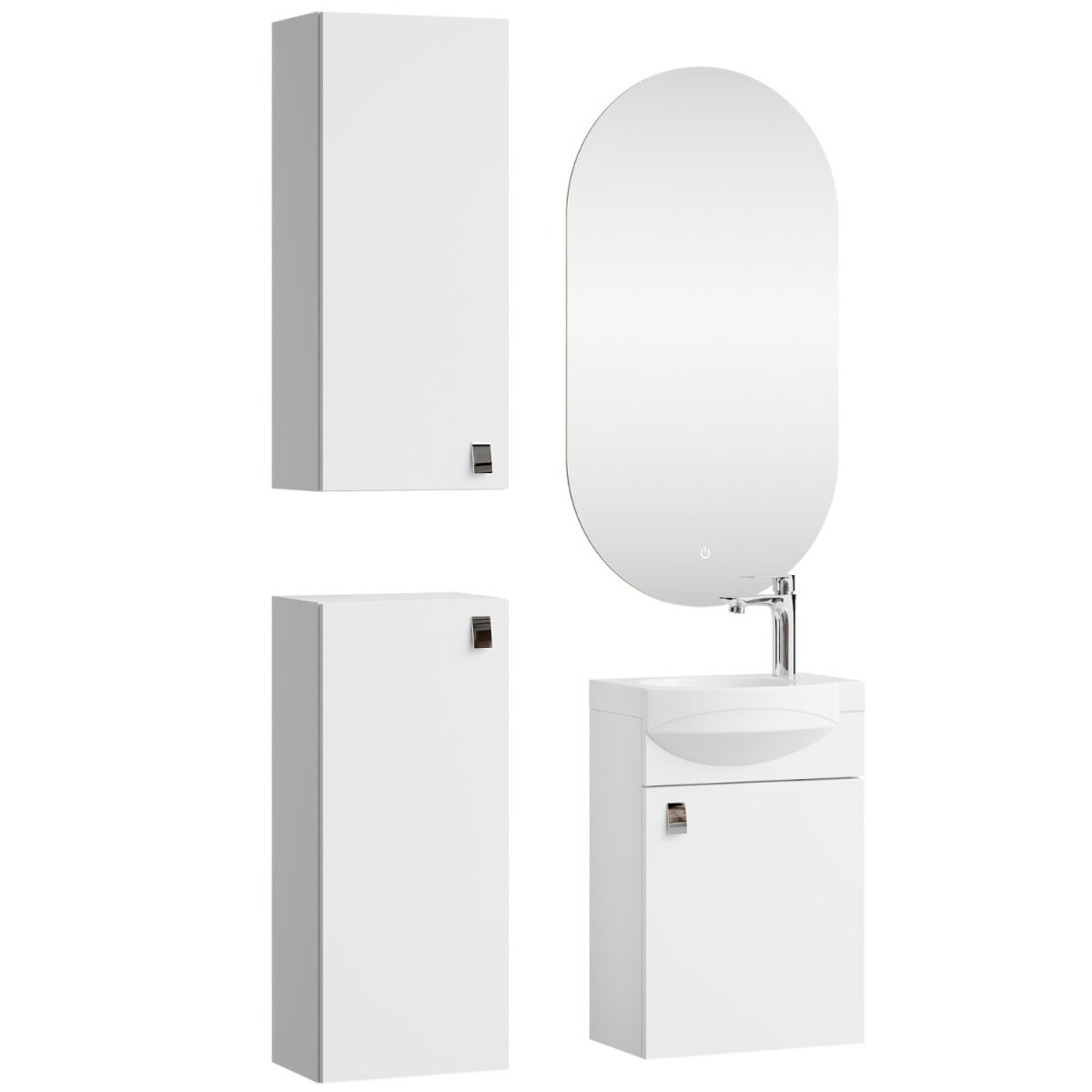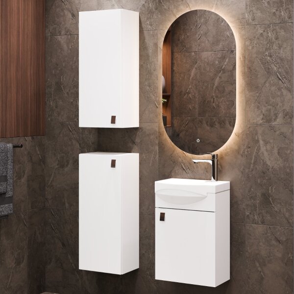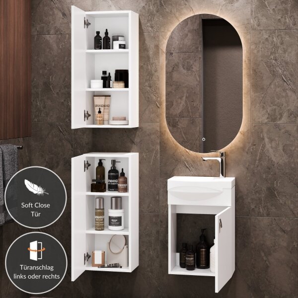 Badmöbel-Set – Waschtisch mit Keramikwaschbecken 40 cm, LED-Spiegel & 2 Midischrank