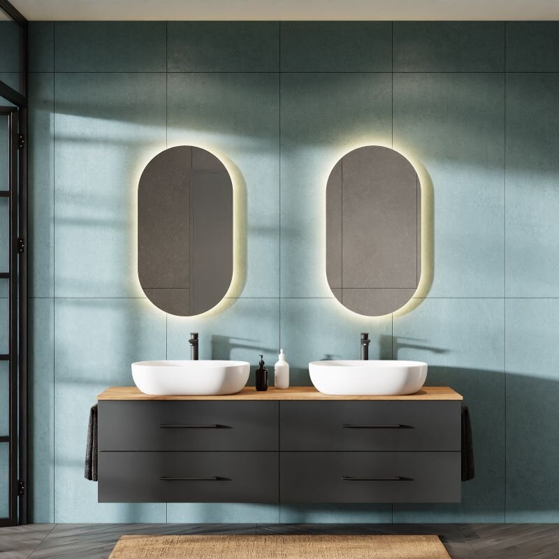 - Functions & Details: Soft-close function for gentle closing, 4 drawers in vanity base unit, two oval mirrors without LED lighting.