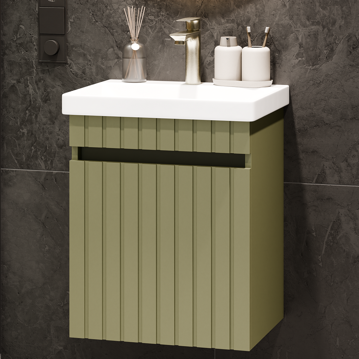 Die glatte Oberfläche des Waschbeckens ist nicht nur äußerst hygienisch, sondern auch leicht zu reinigen, was Ihre tägliche Routine vereinfacht und Ihnen mehr Zeit für die wichtigen Dinge im Leben gibt. Ein weiteres Highlight unseres Sets ist der Waschtisch selbst, der nicht nur großzügigen Stauraum bietet, sondern auch mit einer Auswahl an praktischen Features ausgestattet ist.