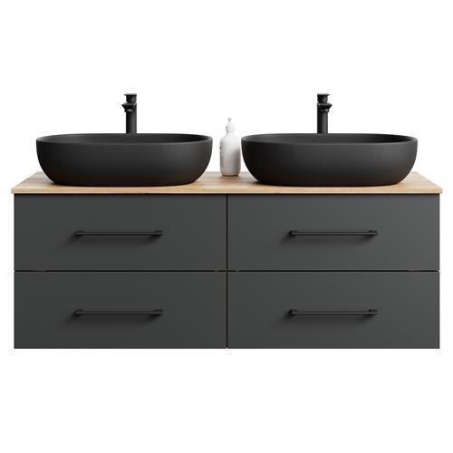 1x Waschtischunterschrank, 2x Aufsatzwaschbecken schwarz Breite 60 cm,