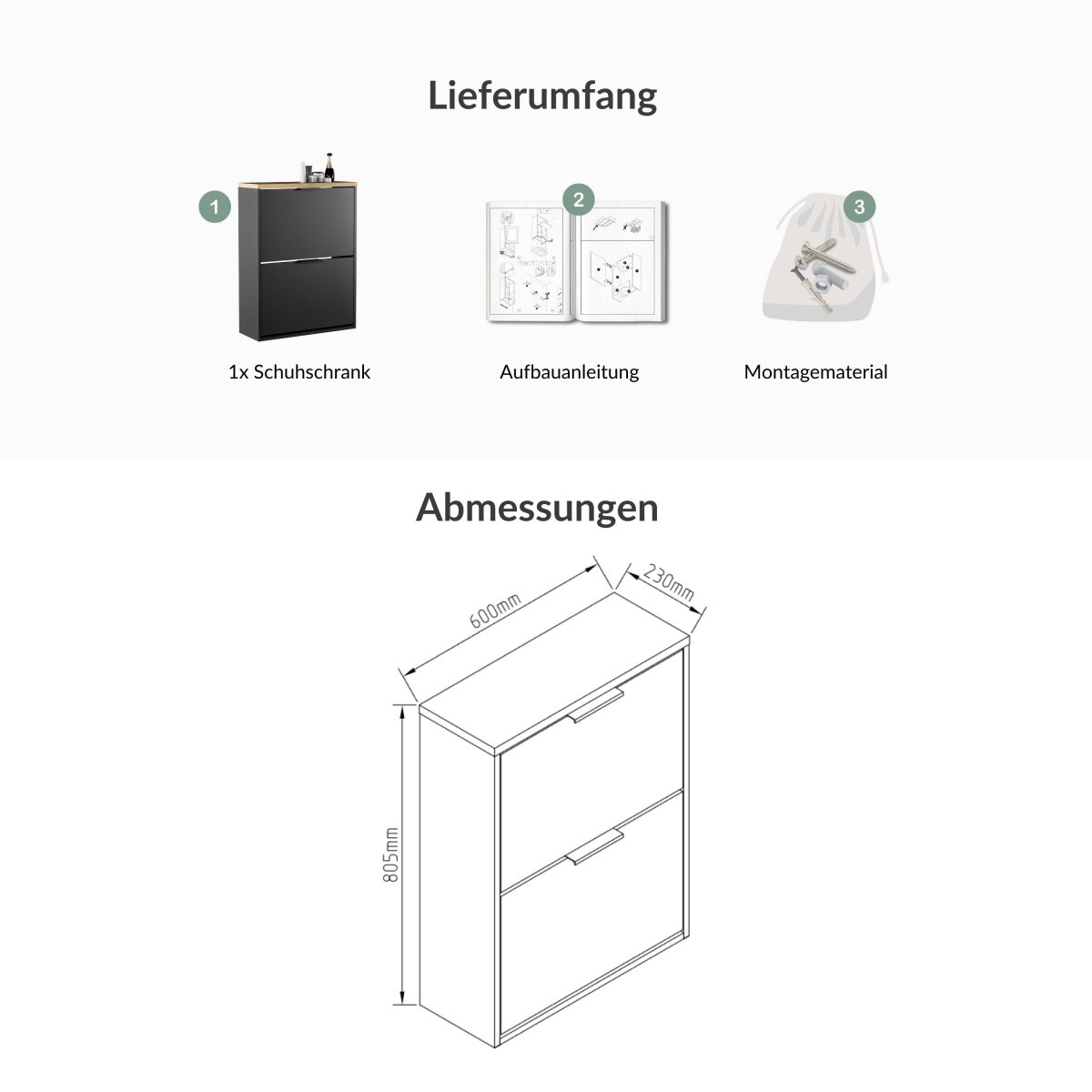 1x STIVIO Schuhschrank 60 x 80,5 x 23 cm (B x H x T)