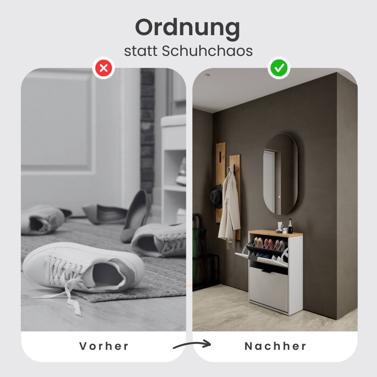 Kompakter Schuhschrank mit 2 Klappen – Platzsparendes Design für schmale Flure & Dielen