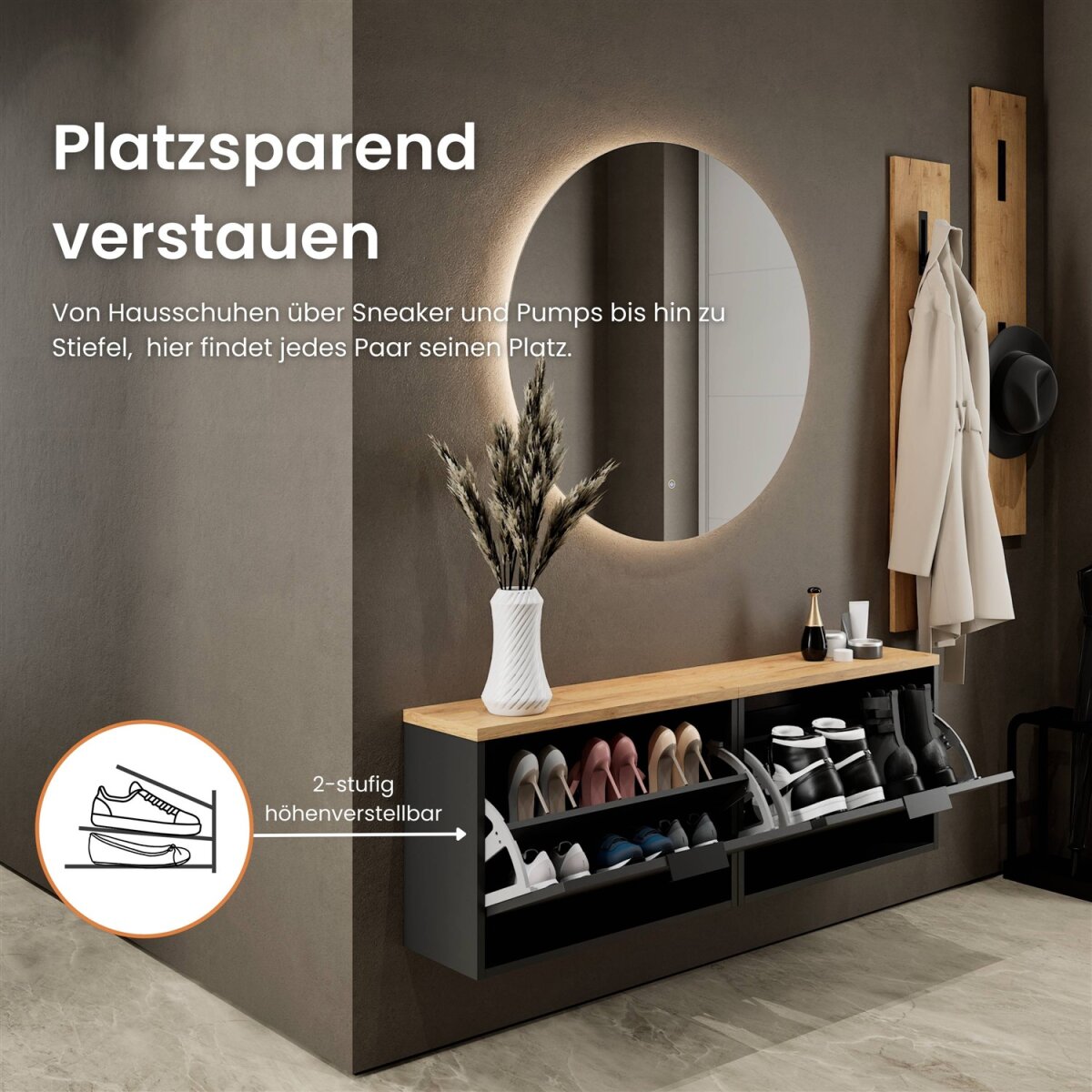 Unser STIVIO Schuhschrank gibt es noch in verschiedenen Variationen und Sets mit passenden Spiegeln