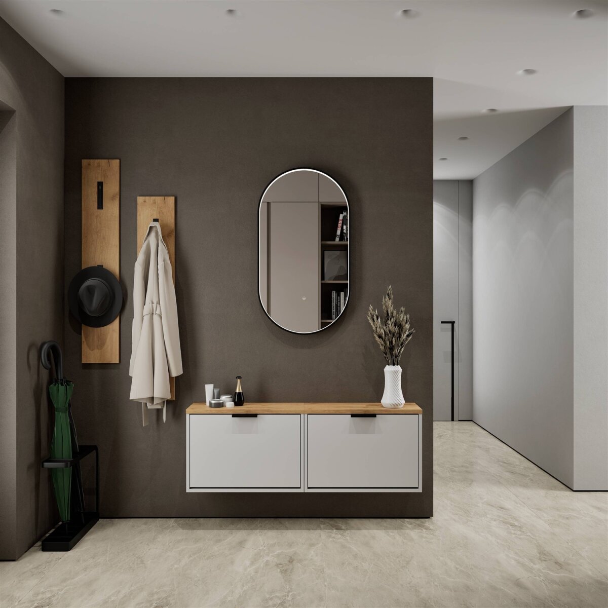 Der Spiegel GLORA mit schwarzem Rahmen (50 x 90 cm) vereint zeitlose Eleganz und modernes Design. Wählen Sie zwischen Warm-, Neutral- und Kaltweiß, um die perfekte Atmosphäre zu schaffen. (3000 bis 6000 Kelvin).