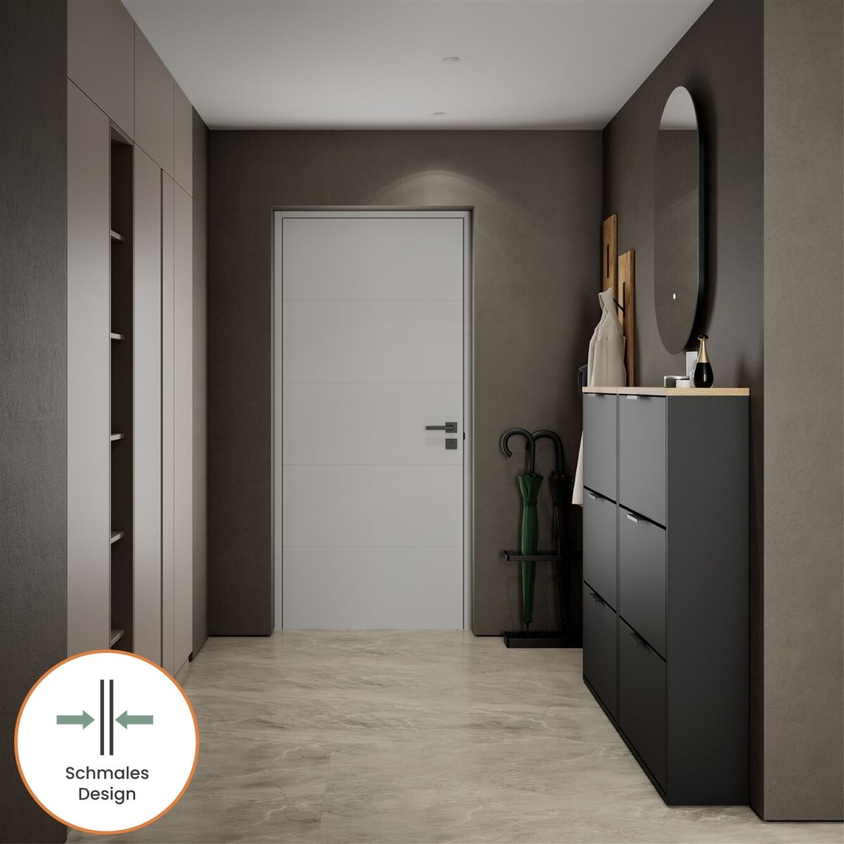 2 Kompakte Schuhschränke mit 3 Klappen – Platzsparendes Design für schmale Flure & Dielen