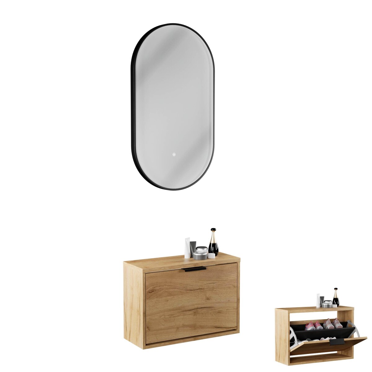 | Lieferungsumfang: | 1x Schuhschrank, 1x LED-Spiegel, 1x Montagematerial, 1x Montageanleitung |