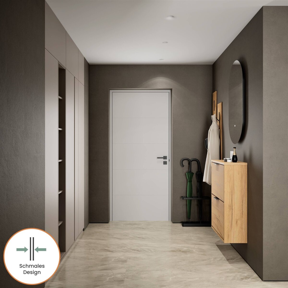 Dieser moderne Schuhschrank ist die perfekte Lösung für alle, die auch in engen Fluren oder kompakten Dielen nicht auf Stil und Ordnung verzichten möchten. Mit einer Tiefe von nur 23 cm bietet er überraschend viel Stauraum bei minimalem Platzbedarf. Hinter der grifflosen Klappe verbirgt sich ein durchdacht strukturierter Innenraum mit einem flexibel nutzbaren Regalboden – ideal zur Aufbewahrung verschiedenster Schuhtypen.