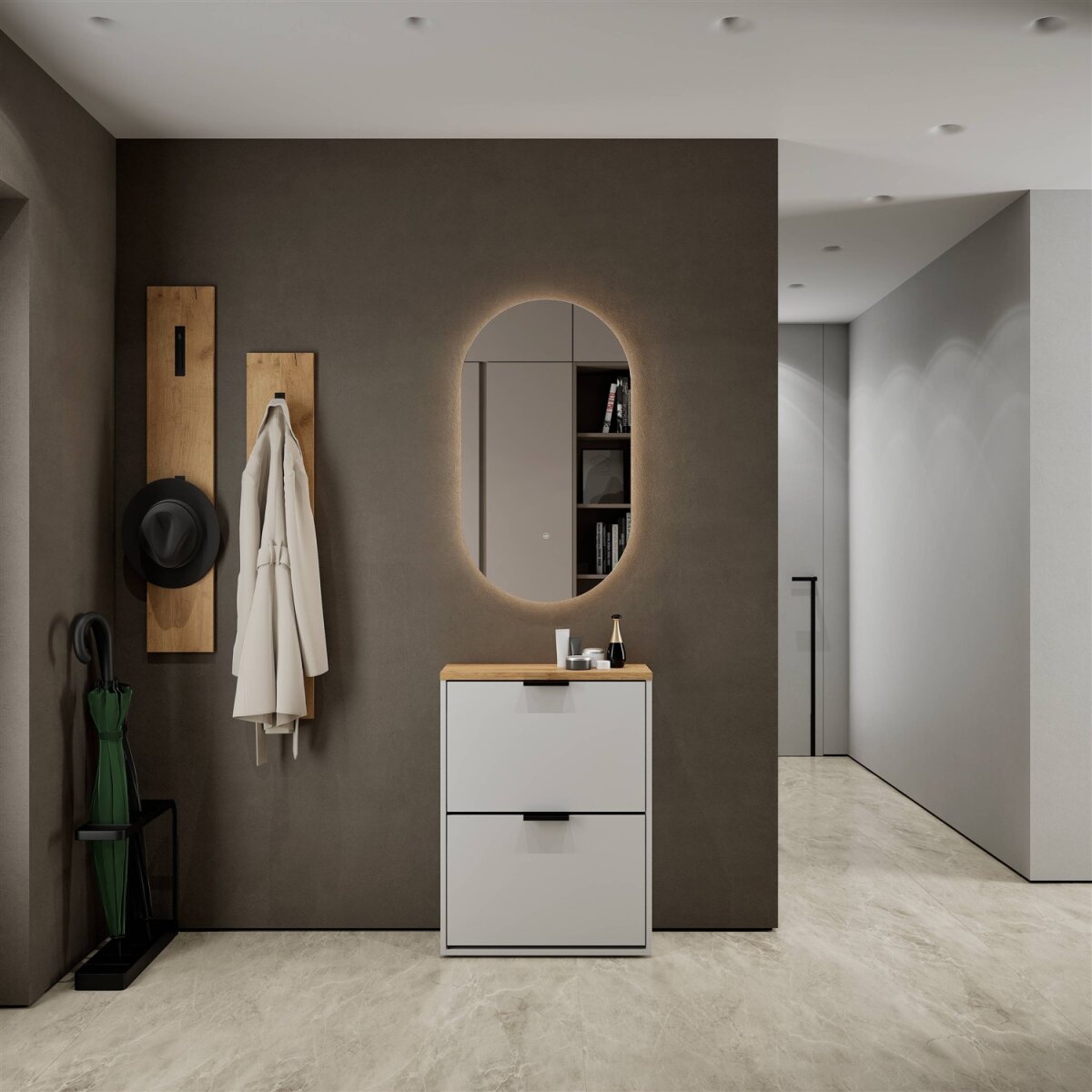Der Schuhschrank STIVIO vereint modernes Design, funktionale Ausstattung und eine ästhetische Leichtigkeit, die besonders in schmalen Fluren oder kompakten Dielen überzeugt. Mit seiner schlanken Tiefe von nur 23 cm bietet STIVIO überraschend viel Stauraum, ohne den Raum einzuengen.