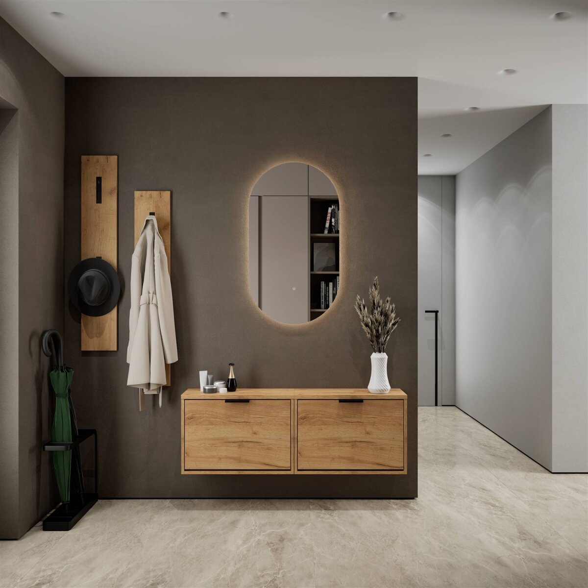 Der elegante Wandspiegel ohne Rahmen (50 x 90 cm) überzeugt nicht nur mit klarer Formensprache, sondern auch durch die integrierte LED-Beleuchtung mit neutralweißem Licht (4000–4200 K)