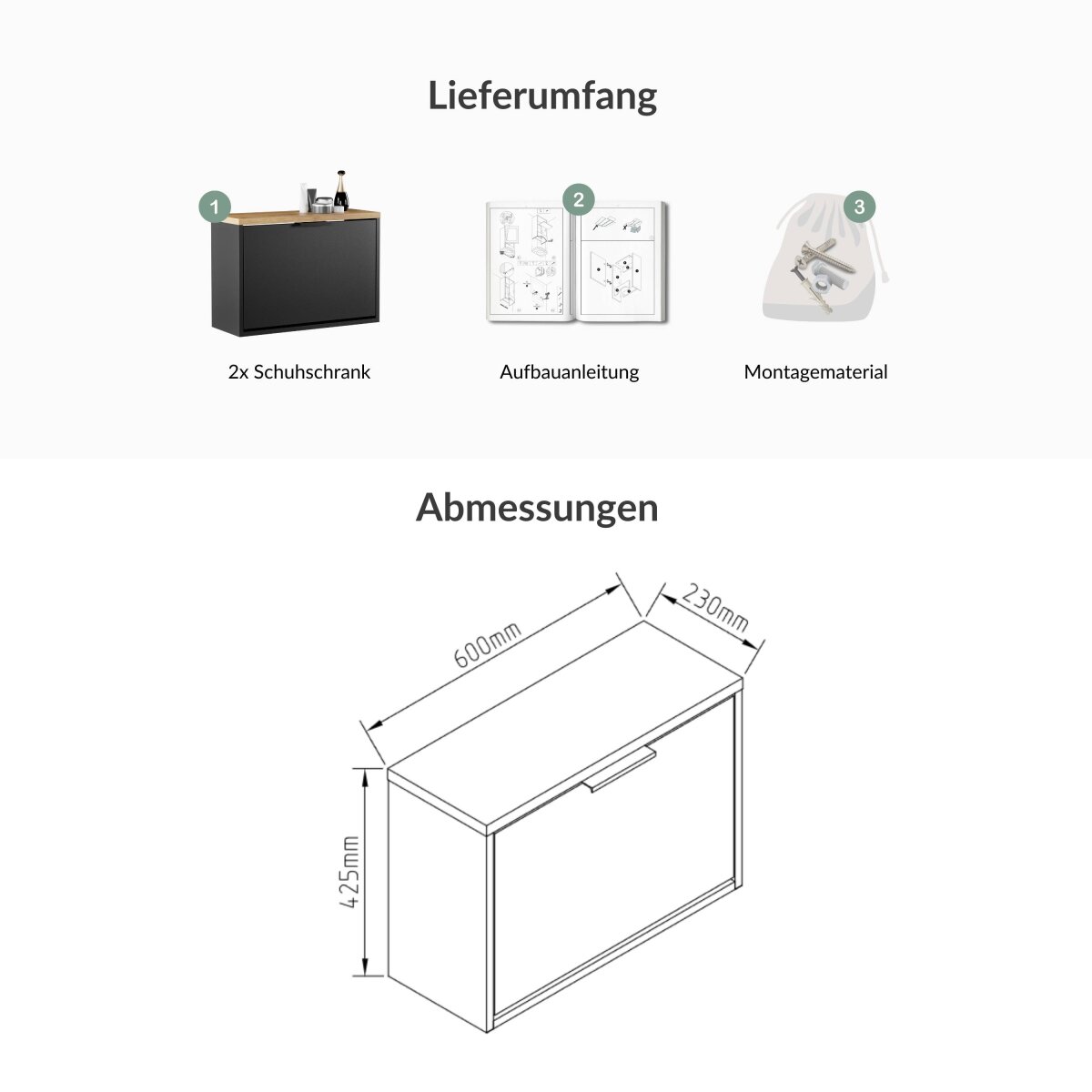 | Lieferungsumfang: | 2x Schuhschrank, 1x Montagematerial, 1x Montageanleitung |