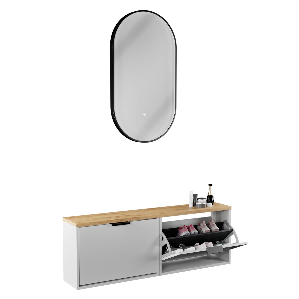 | Lieferungsumfang: | 1x Schuhschrank, 1x LED-Spiegel, 1x Montagematerial, 1x Montageanleitung |