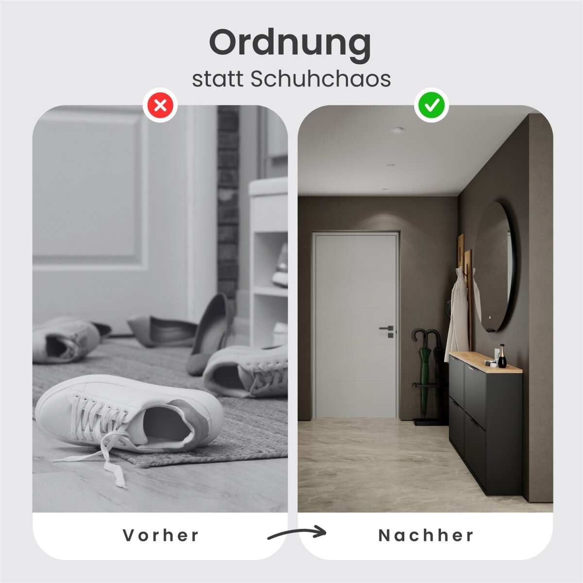 2 Kompakte Schuhschränke mit 2 Klappen – Platzsparendes Design für schmale Flure & Dielen
