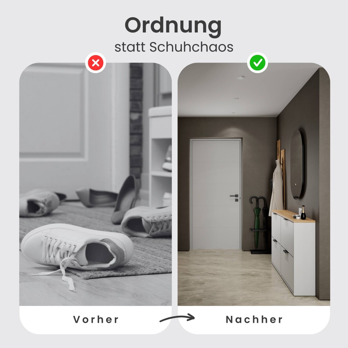2 Kompakte Schuhschränke mit 2 Klappen – Platzsparendes Design für schmale Flure & Dielen