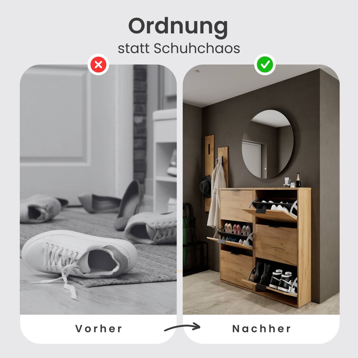 | Lieferungsumfang: | 1x Schuhschrank, 1x Montagematerial, 1x Montageanleitung |