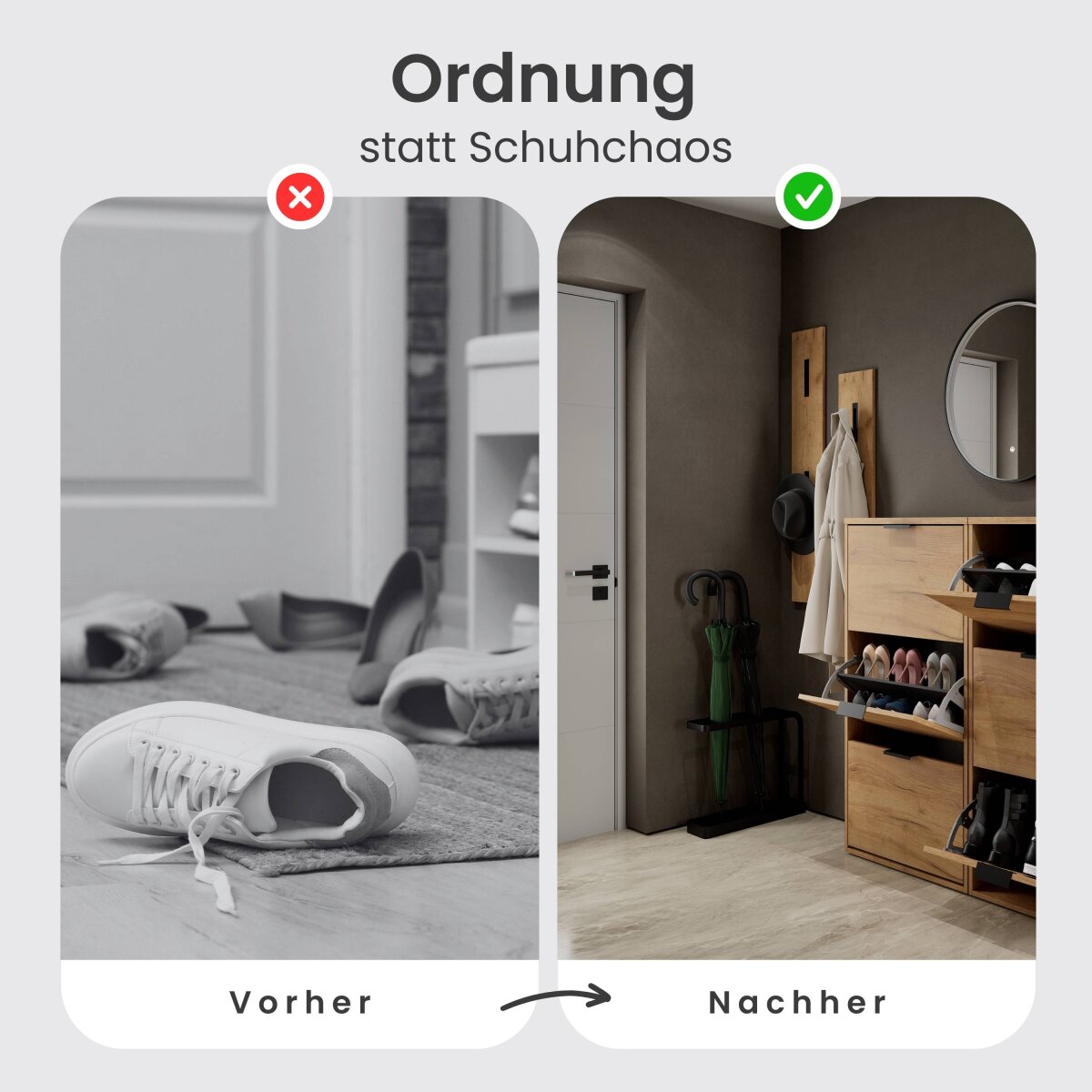 2 Kompakte Schuhschränke mit 3 Klappen – Platzsparendes Design für schmale Flure & Dielen