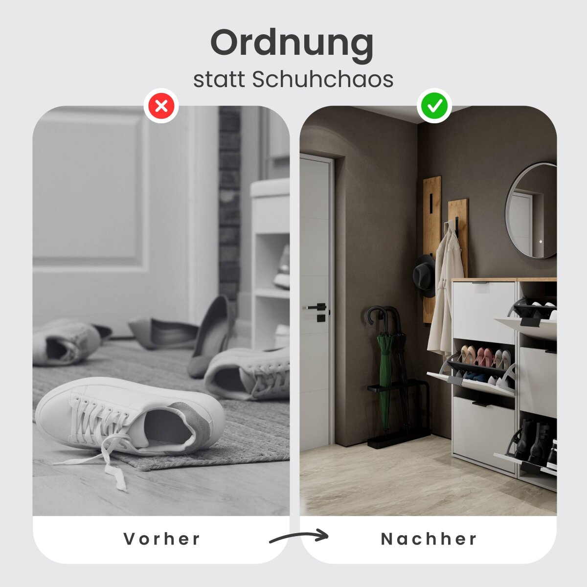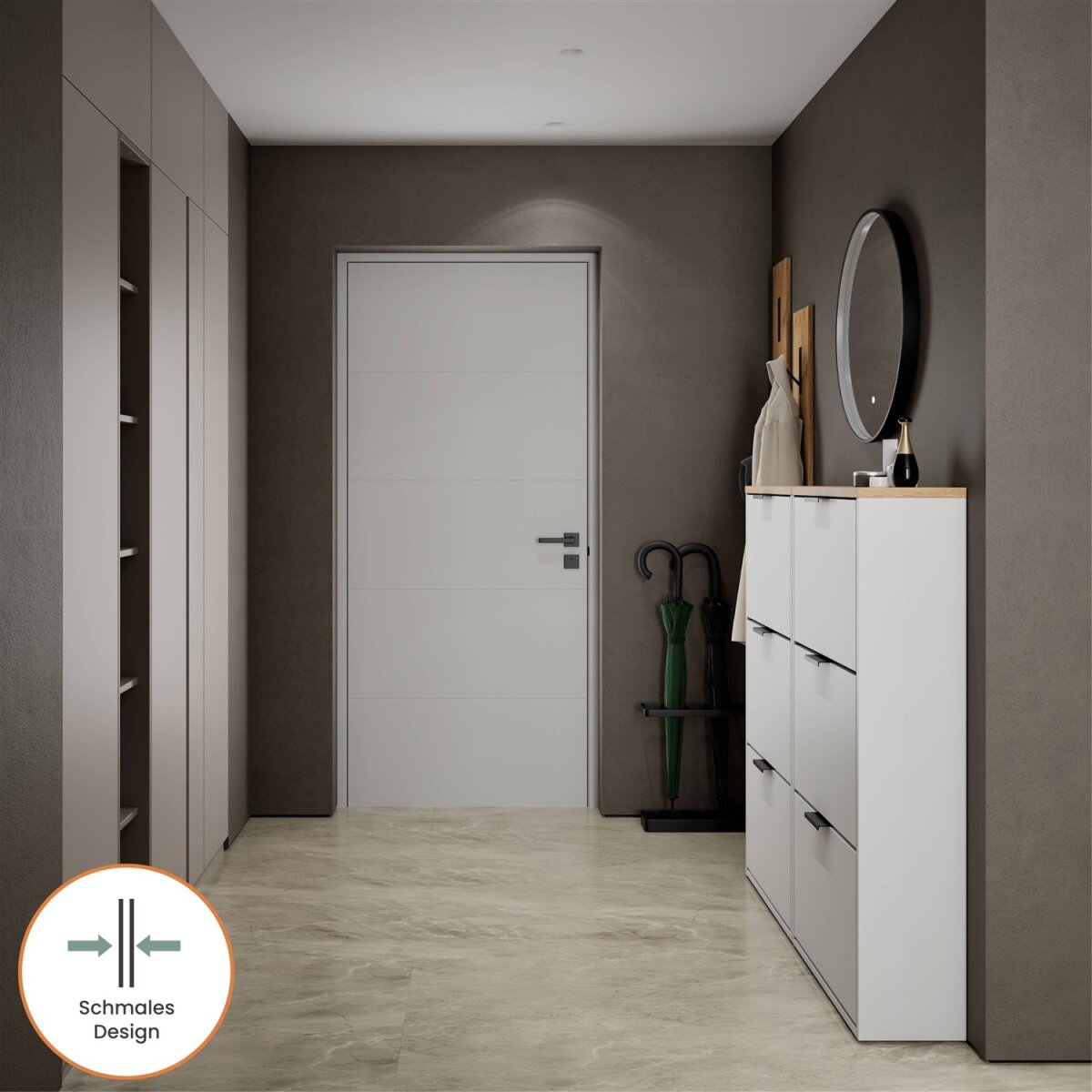 2 Kompakte Schuhschränke mit 3 Klappen – Platzsparendes Design für schmale Flure & Dielen