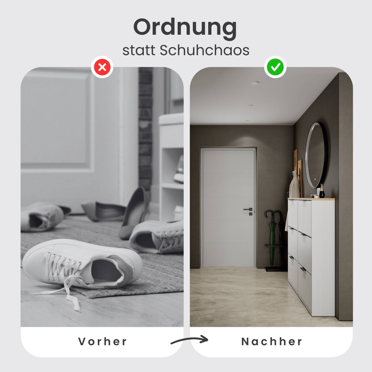 2 Kompakte Schuhschränke mit 3 Klappen – Platzsparendes Design für schmale Flure & Dielen