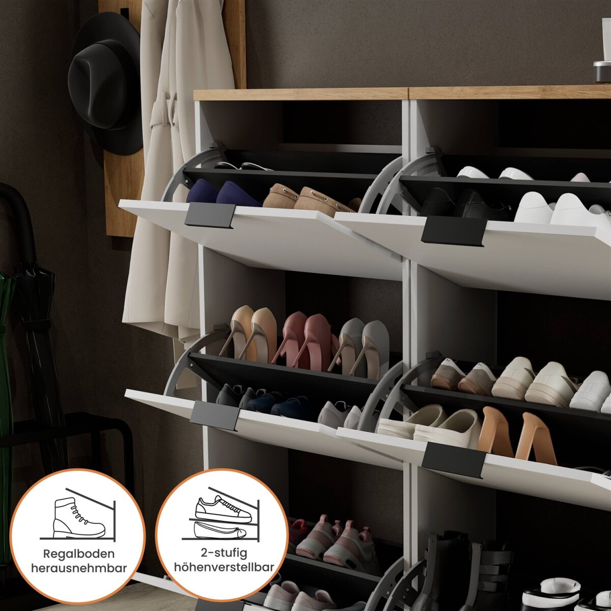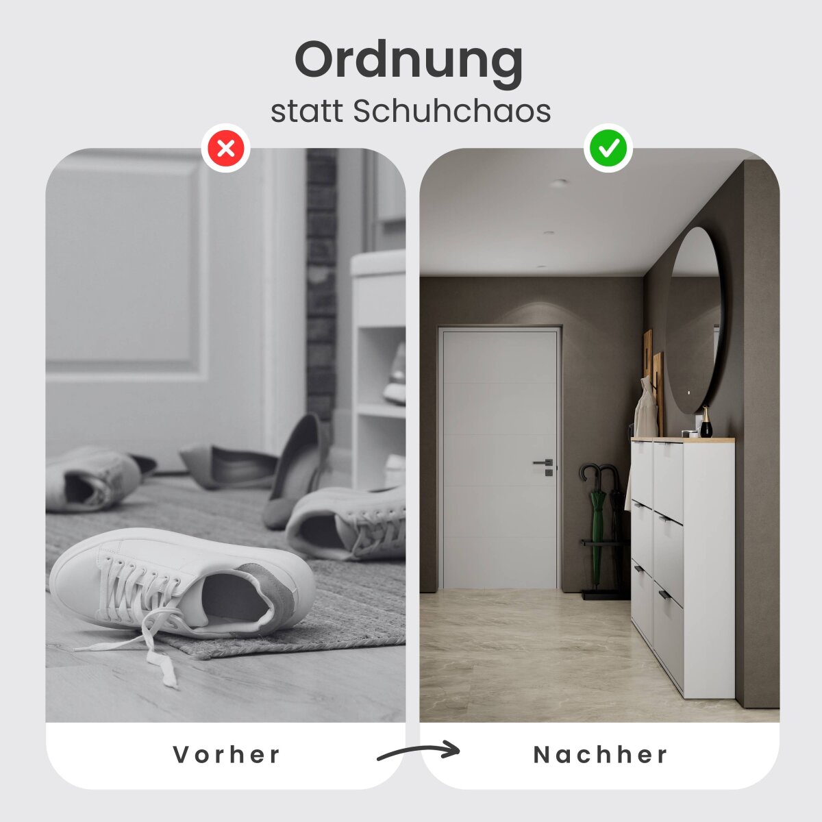 2 Kompakte Schuhschränke mit 3 Klappen – Platzsparendes Design für schmale Flure & Dielen