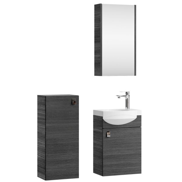 - Badmöbel-Set mit Waschtisch, Spiegelschrank und Midischrank im abgestimmten Design