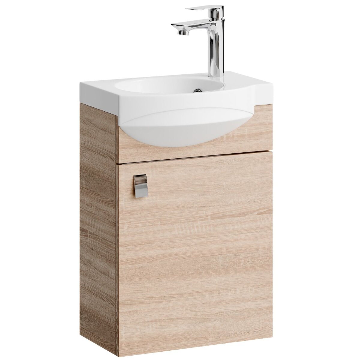 Mit einer Breite von nur ca. 40 cm fügt sich das Set perfekt auch in kleinere Räume ein und bietet mit zwei geräumigen Fächern dennoch überraschend viel Stauraum für Ihre täglichen Badutensilien.