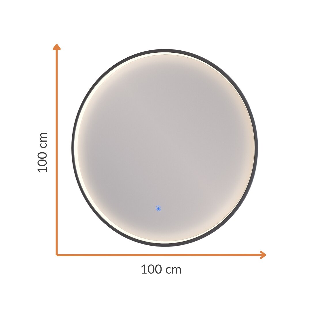 Spiegel Veluna – Runder LED-Spiegel mit schwarzem Rahmen