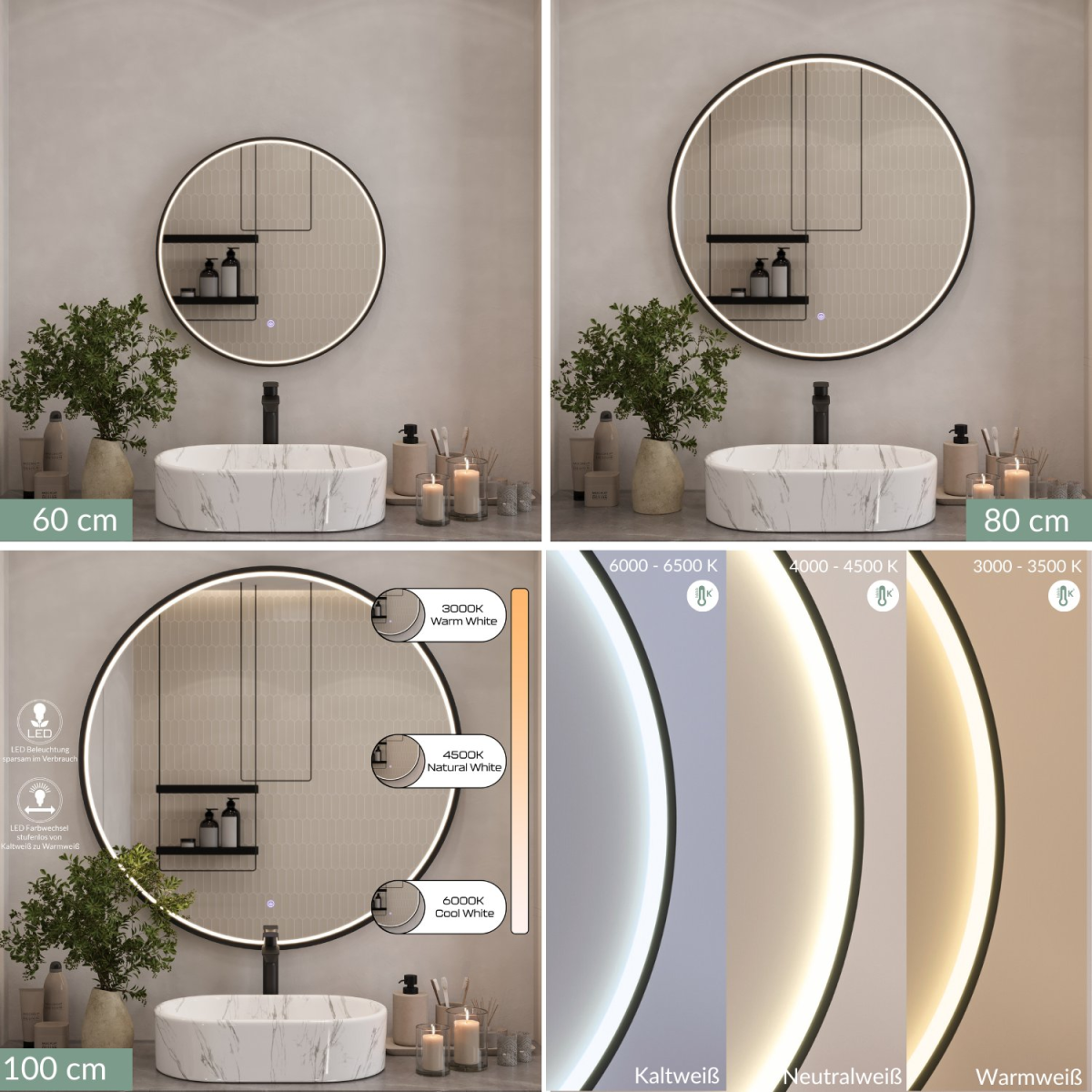 Entscheiden Sie sich zwischen kaltweißem, neutralweißem oder warmweißem Licht, um die perfekte Atmosphäre für jeden Moment zu schaffen. Ob für das präzise Schminken am Morgen oder ein entspannendes Ambiente am Abend – der Spiegel passt sich optimal Ihren Bedürfnissen an. Dabei sorgt das augenfreundliche Licht für höchsten Komfort zu jeder Tageszeit.