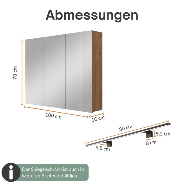 | Maße Spiegelschrank (B x H x T): | 100 x 70 x 16 cm |