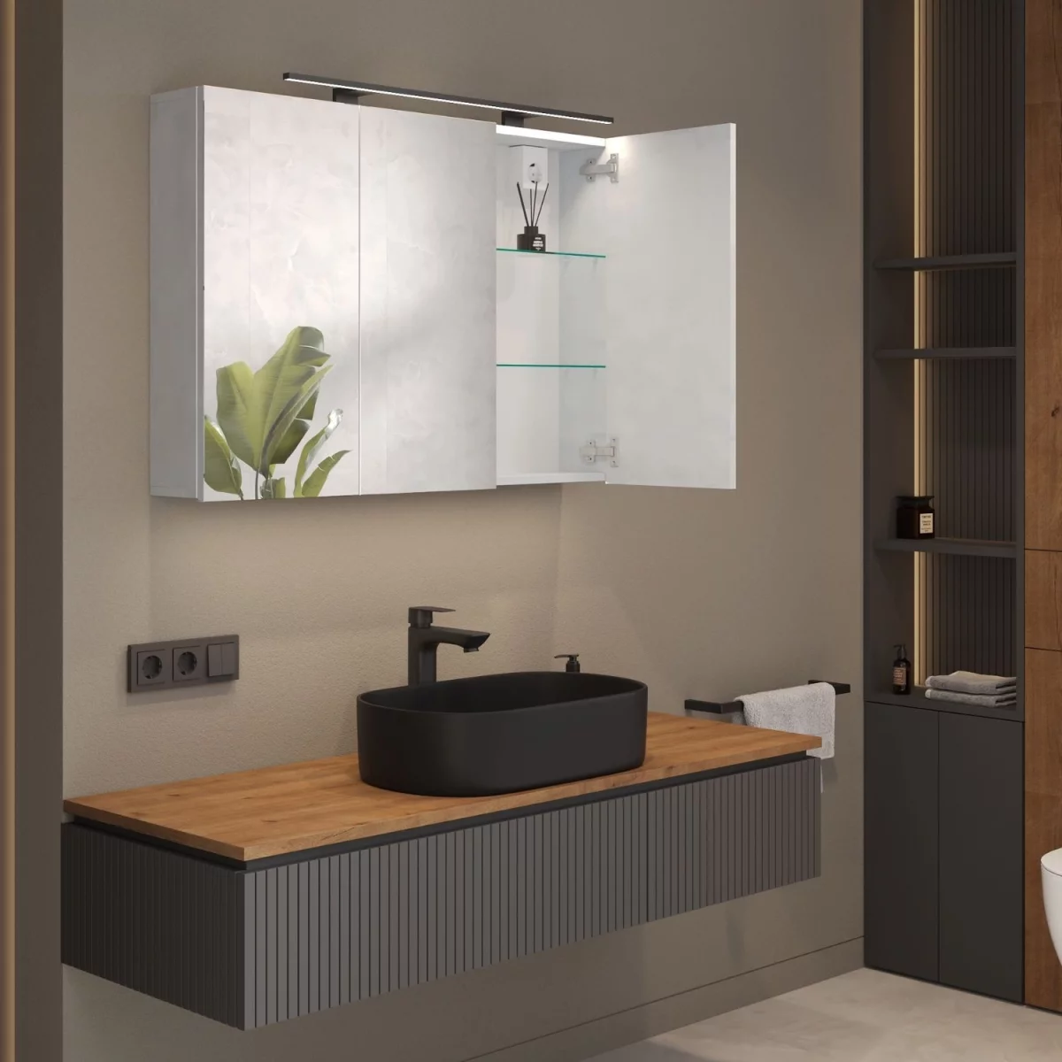 Unser Spiegelschrank ARIA ist ein klassisches Möbelstück, dass nicht nur sehr praktisch ist, sondern sich einfach in Ihr Badezimmer integrieren lässt!