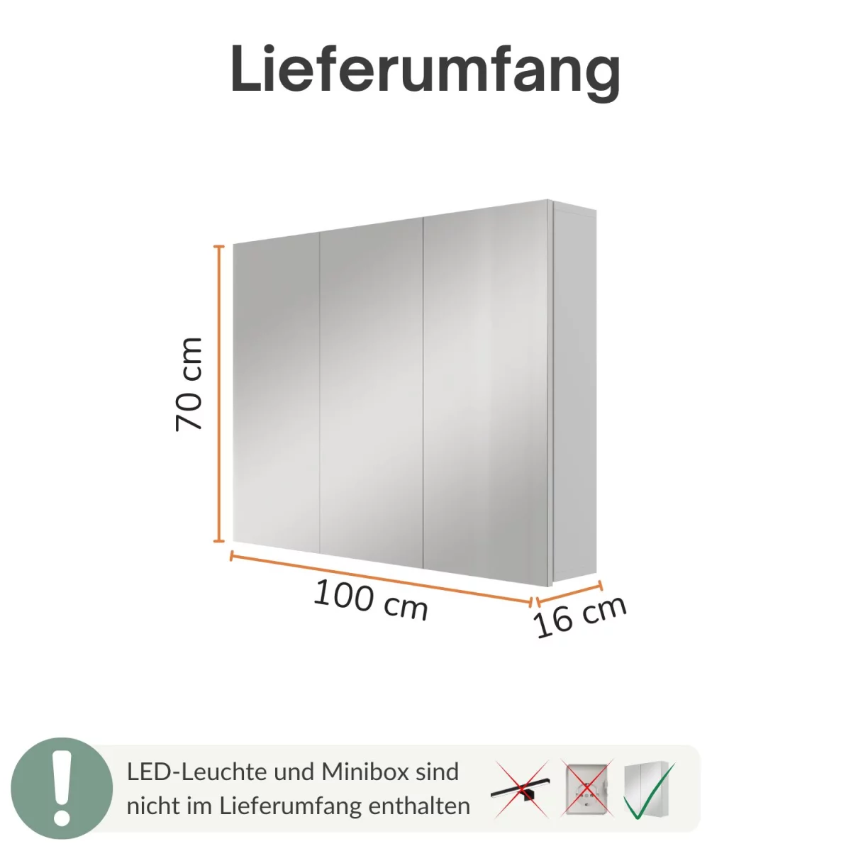 | Maße Spiegelschrank (B x H x T): | 100 x 70 x 16 cm |