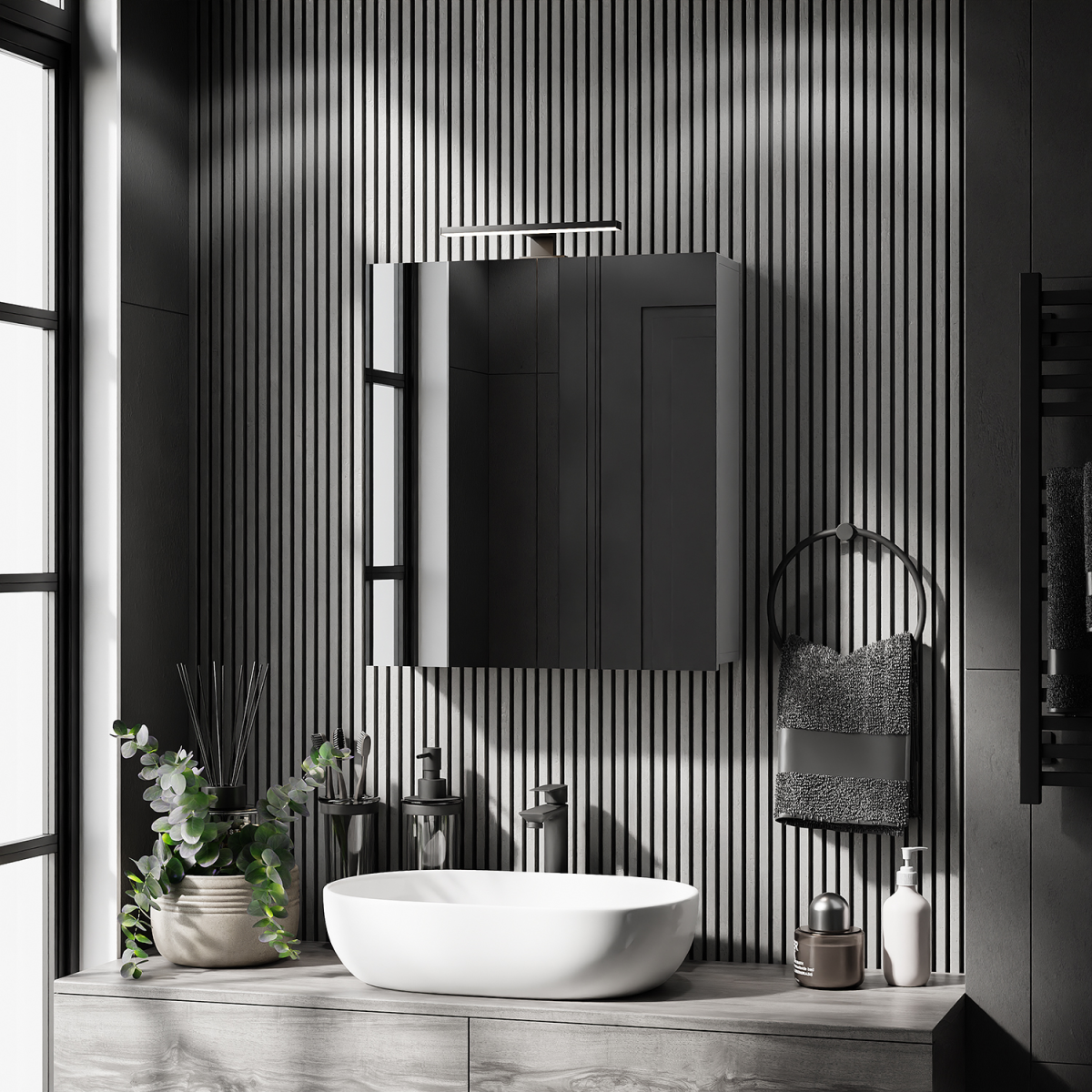 Mit seinem zeitgemäßen und minimalistischen Design fügt sich der Spiegelschrank Merkur harmonisch in verschiedene Badezimmereinrichtungen ein. Die klare Linienführung und das ansprechende Erscheinungsbild verleihen Ihrem Badezimmer einen Hauch von Eleganz und machen ihn zum Blickfang.