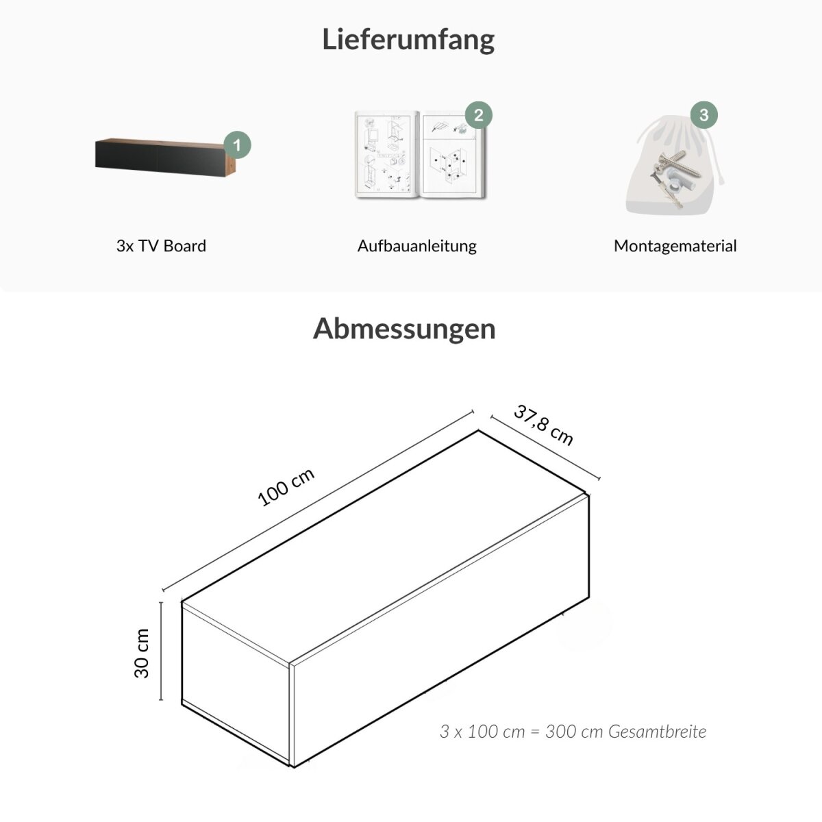 3x TV-Board 100 x 32,5 x 37,8 cm (insgesamt: 300 x 32,5 x 37,8 cm)
