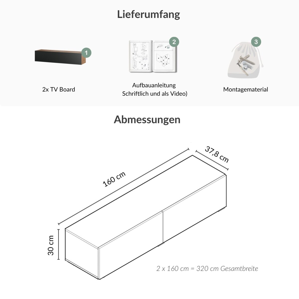 2x TV-Board 160 x 32,5 x 37,8 cm (insgesamt: 320 x 32,5 x 37,8 cm)